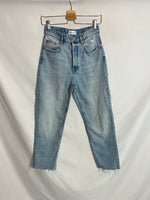 Pantalón vaqueroestilo mom fit abotonado desflecado