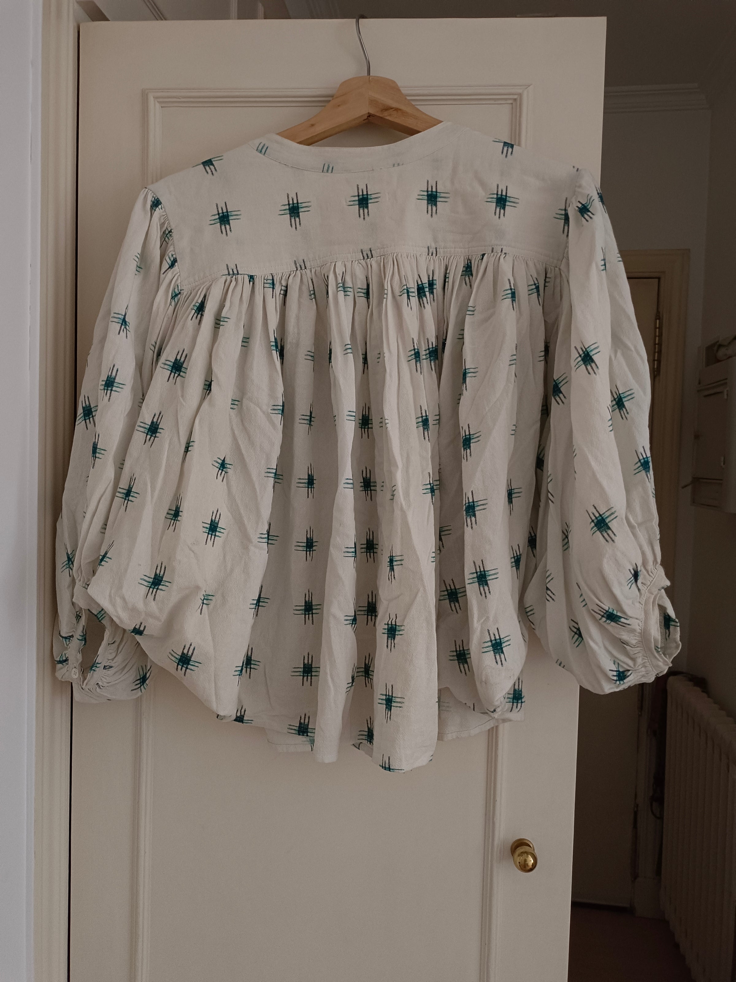 BELLEROSE. blusa beige estampada T.s