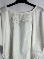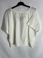 BELLEROSE. Blusa blanca cortita detalle bordado. T 1 (S)