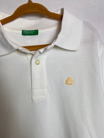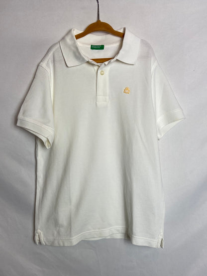 BENETTON. Polo blanco logo T. 8-9 años