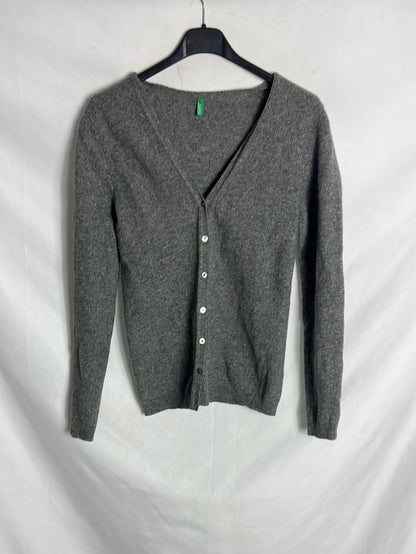 Rebeca gris jaspeada. Parece lana pero lo tiene etiqueta interior. largo 56cm