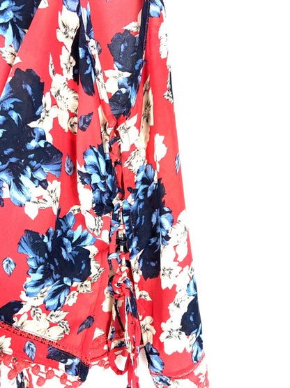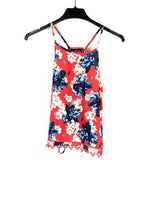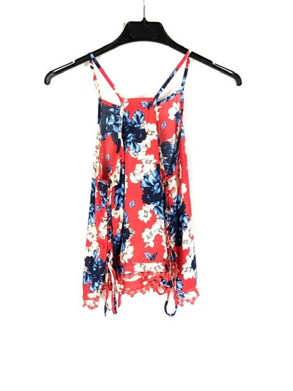 Bershka top tirantes rojos, azules y beiges. Finito no elástico. Aperturas laterales con cordones