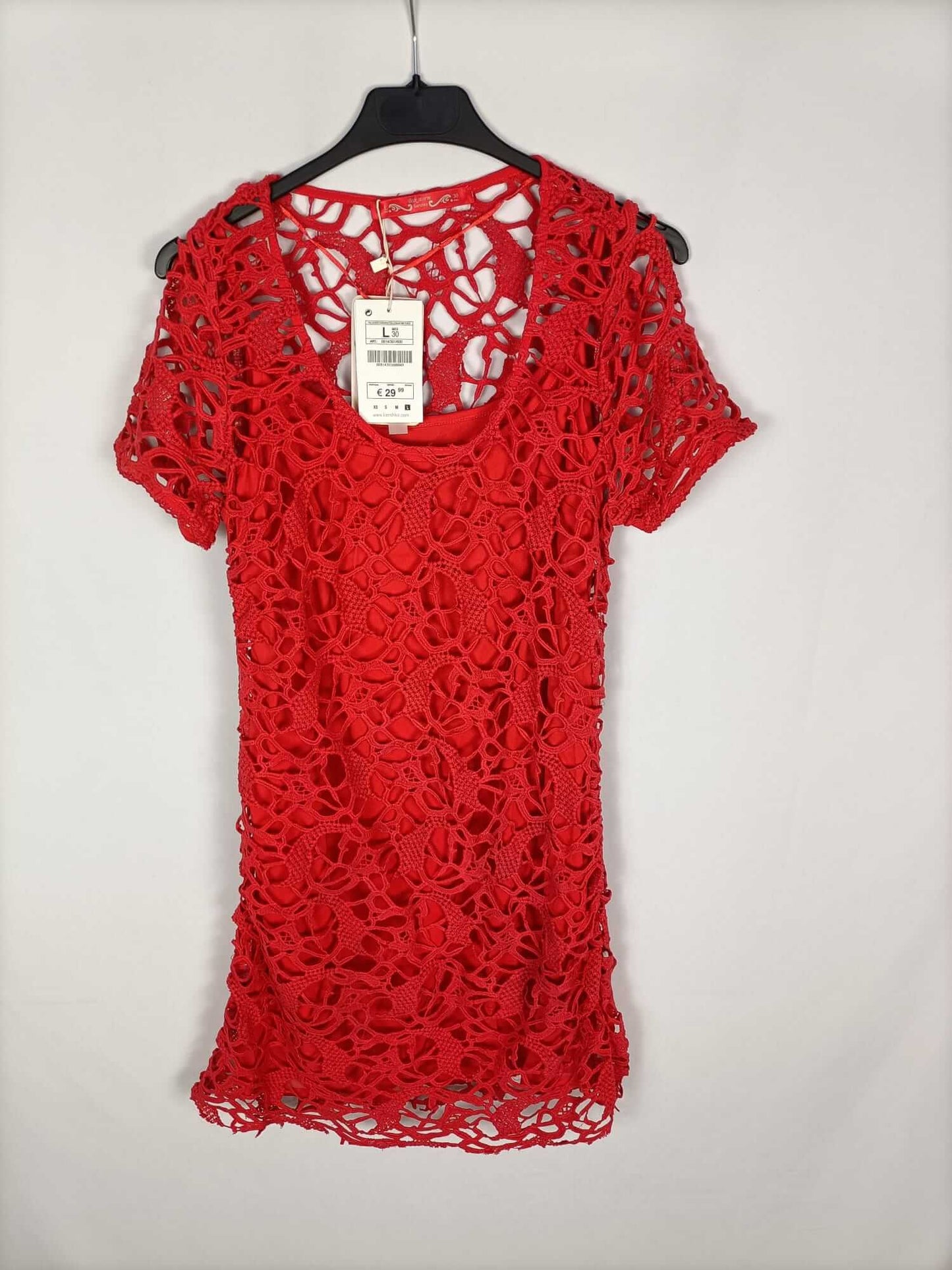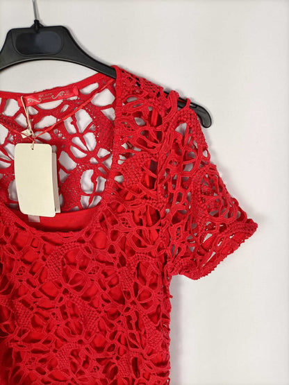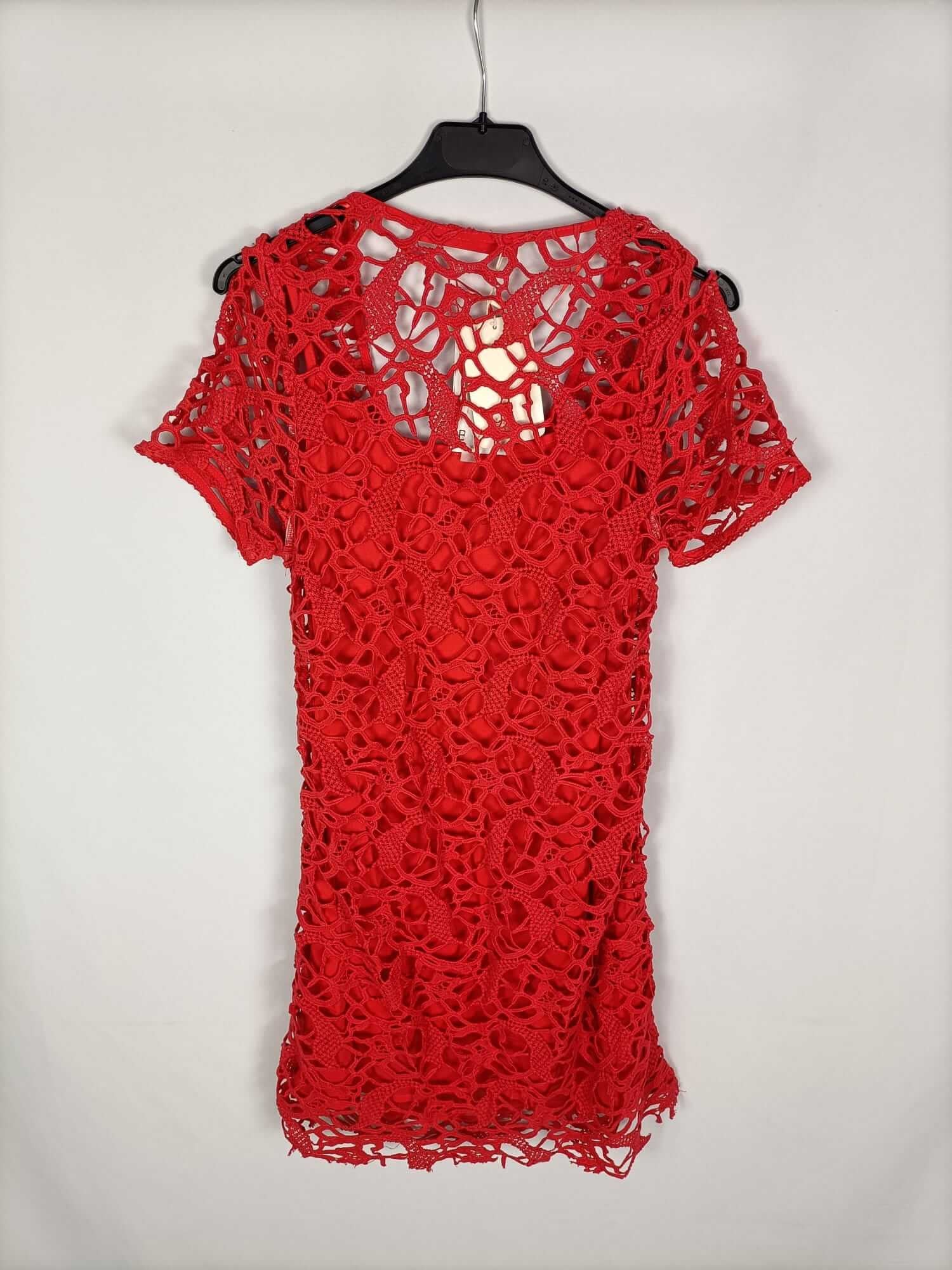 BERHSKA.Vestido rojo encaje T.L