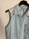 Camisa denim sin mangas detalles de encaje en los hombros