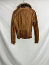 NUEVO CON ETIQUETA. Cazadora camel efecto piel pelo extraible. Tejido efecto desgastado