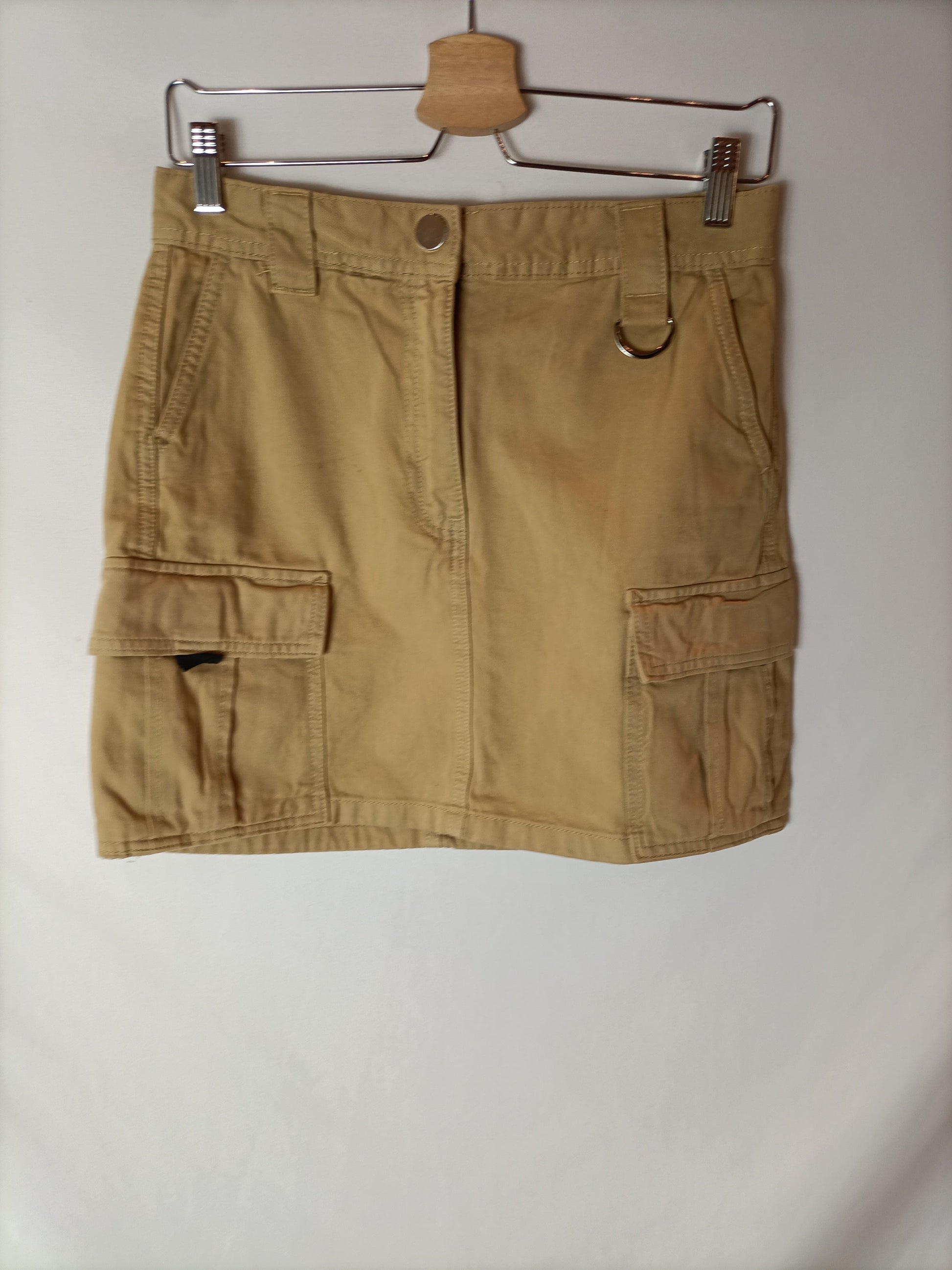 falda corta beige estilo cargo con bolsillos. Cintura 36 cm