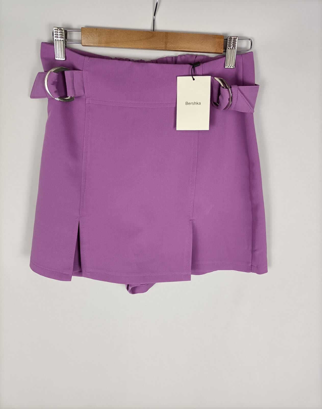 Bershka. NUEVO CON ETIQUETA. Falda plantón lila con detalle de hebillas laterales. Cintia elástica. Cintura 36 cm largo 42 cm