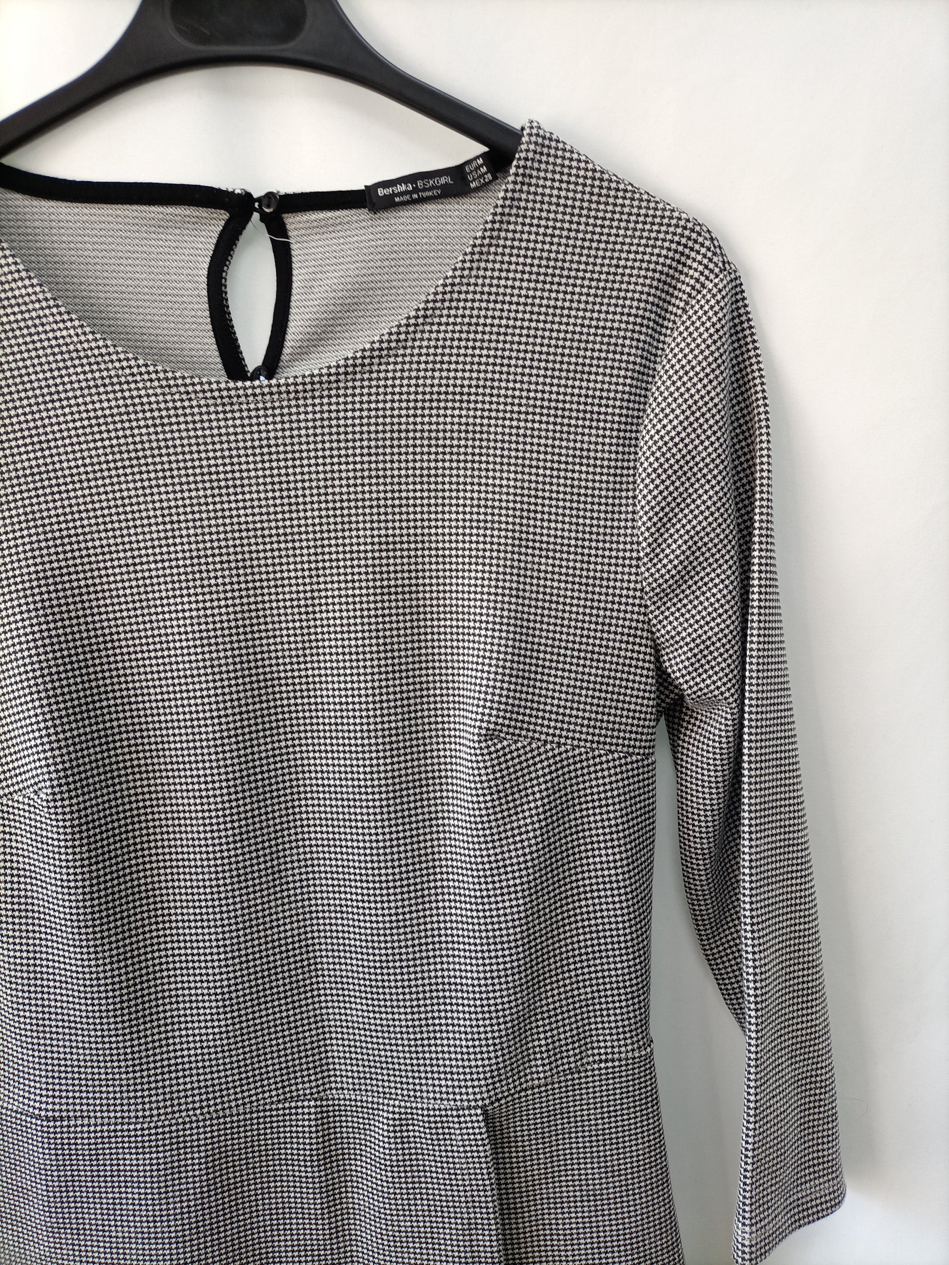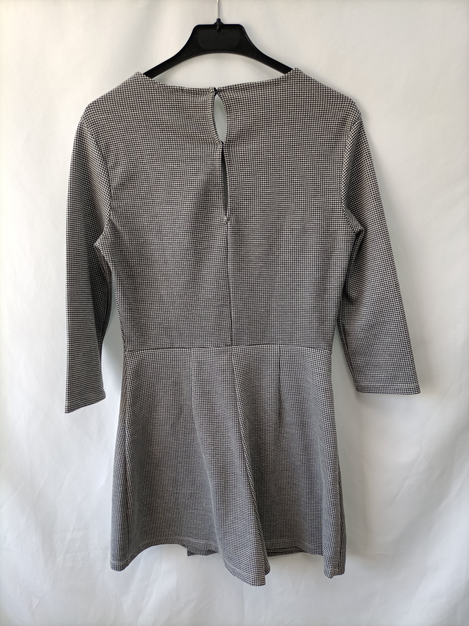 Bershka. Mono de pata de Gallo negro y blanco de tejido elástico. Por delante parece un vestido. Largo 79 cm
