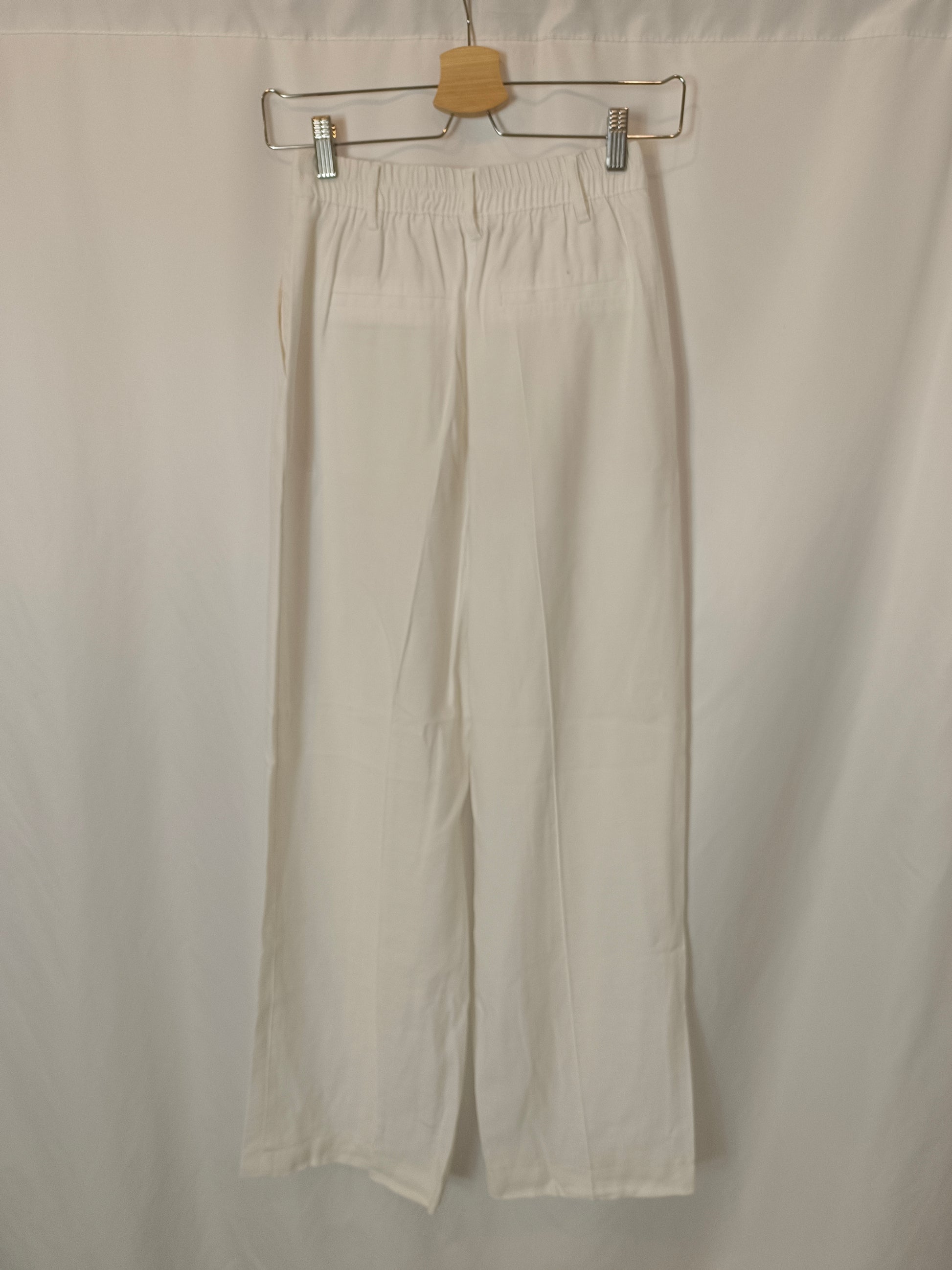 BERSHKA. Pantalón blanco pinzas T.xs