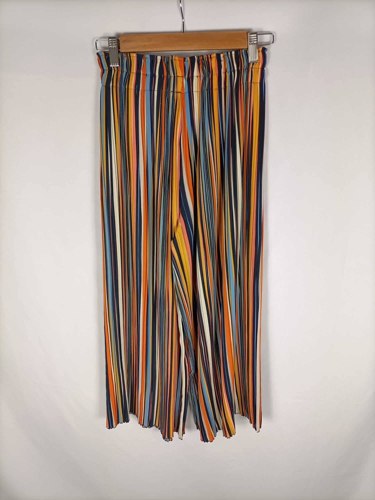 Bershka. S. Pantalón culotte de rayas multicolor. Elastico y fluido. Largo 90 cm