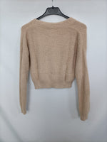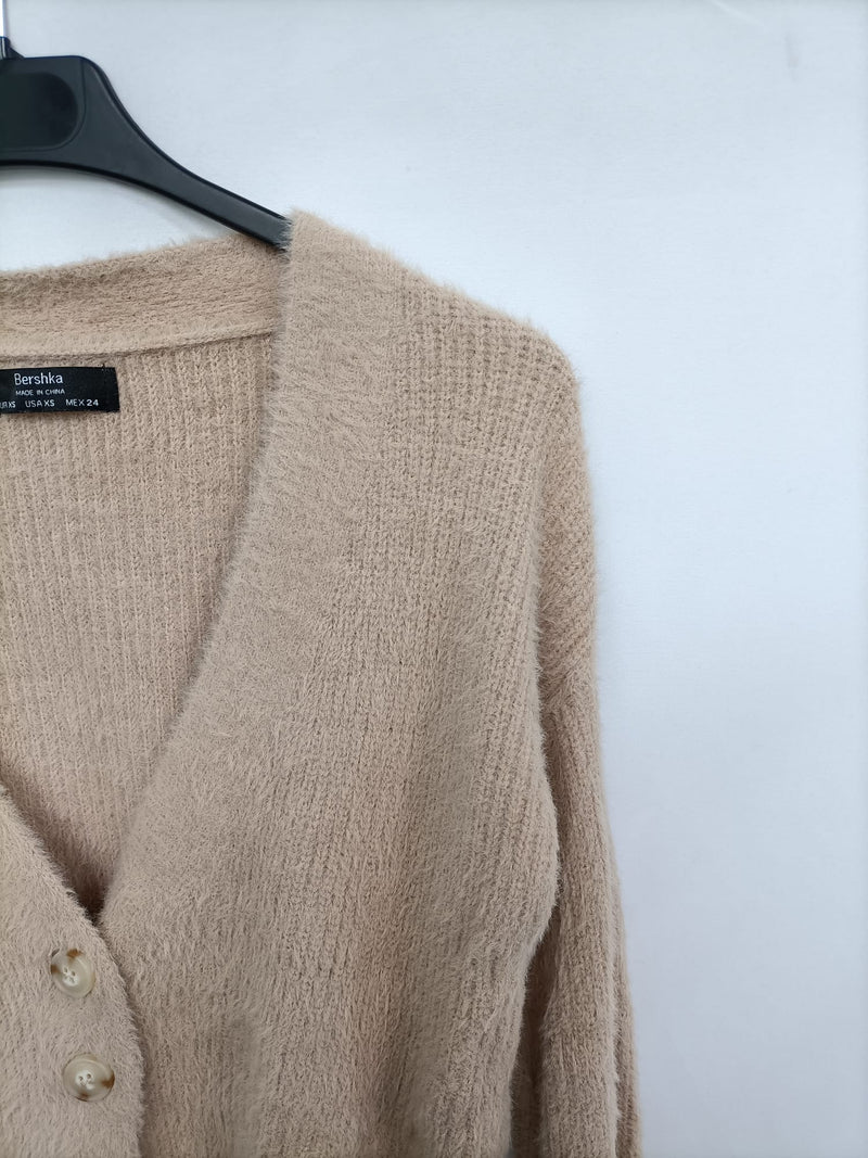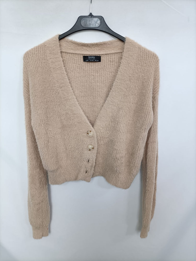 Bershka.s. Rebeca beige cortita de pelito. elástica. Largo 45 cm
