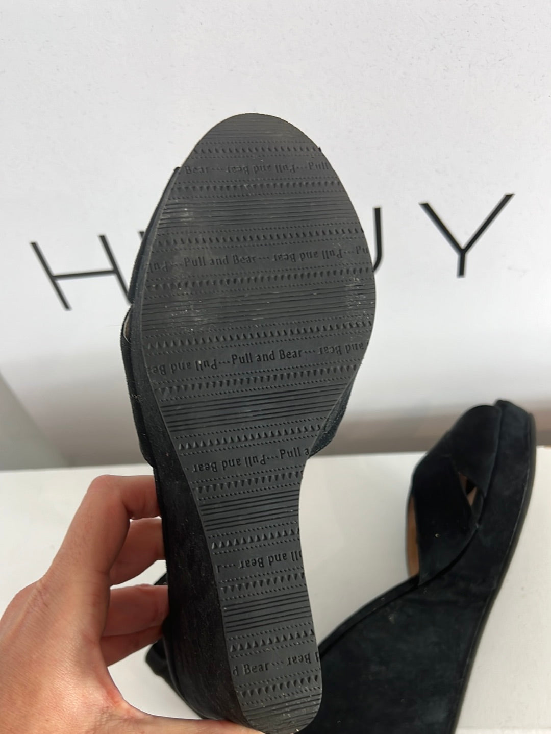 PULl&BEAR. Sandalia antelina negra T.38