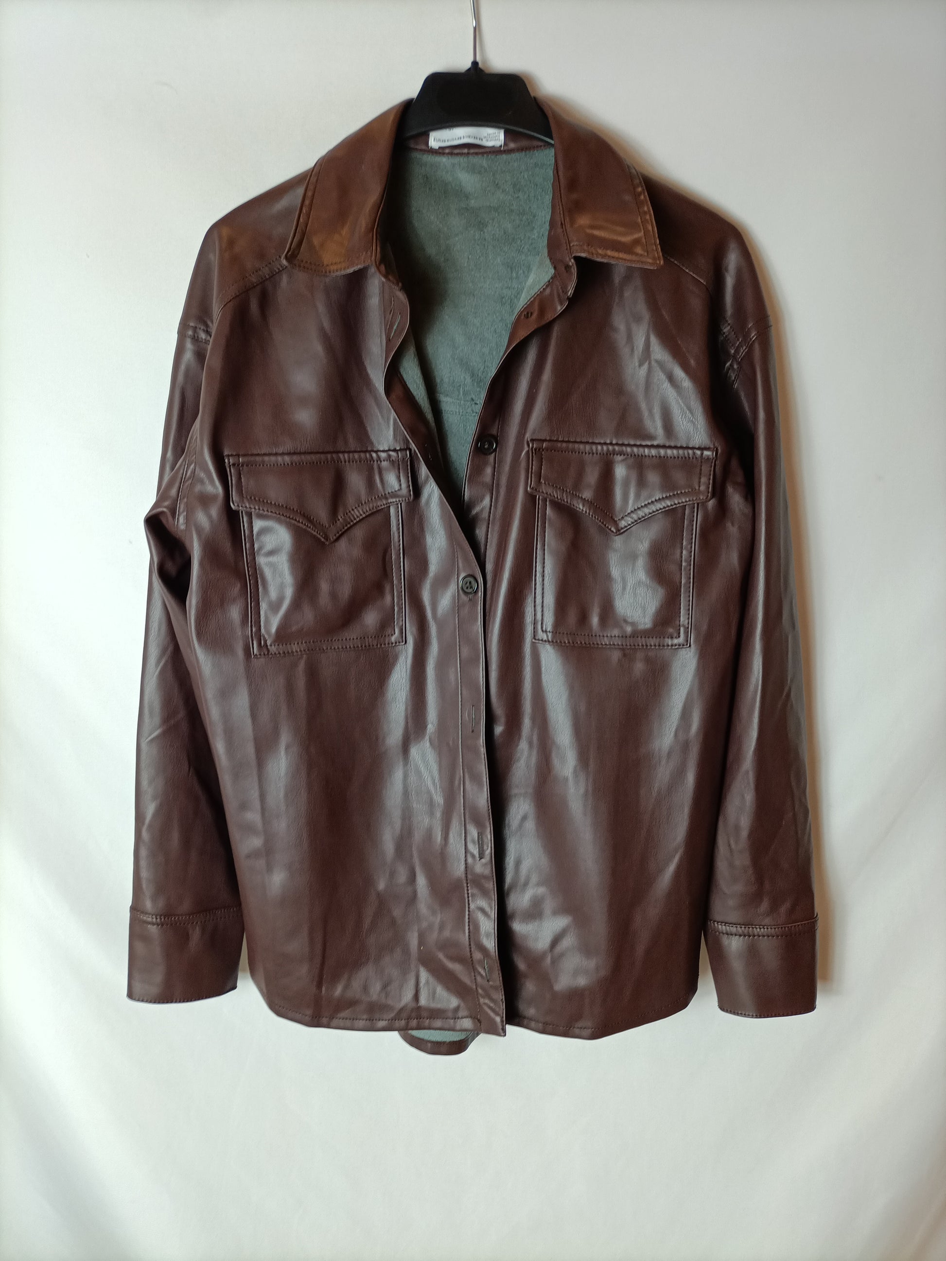 BERSHKA. Sobrecamisa marrón polipiel T.xs/s