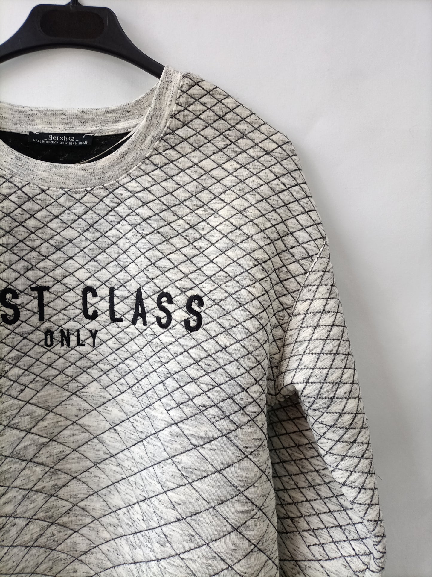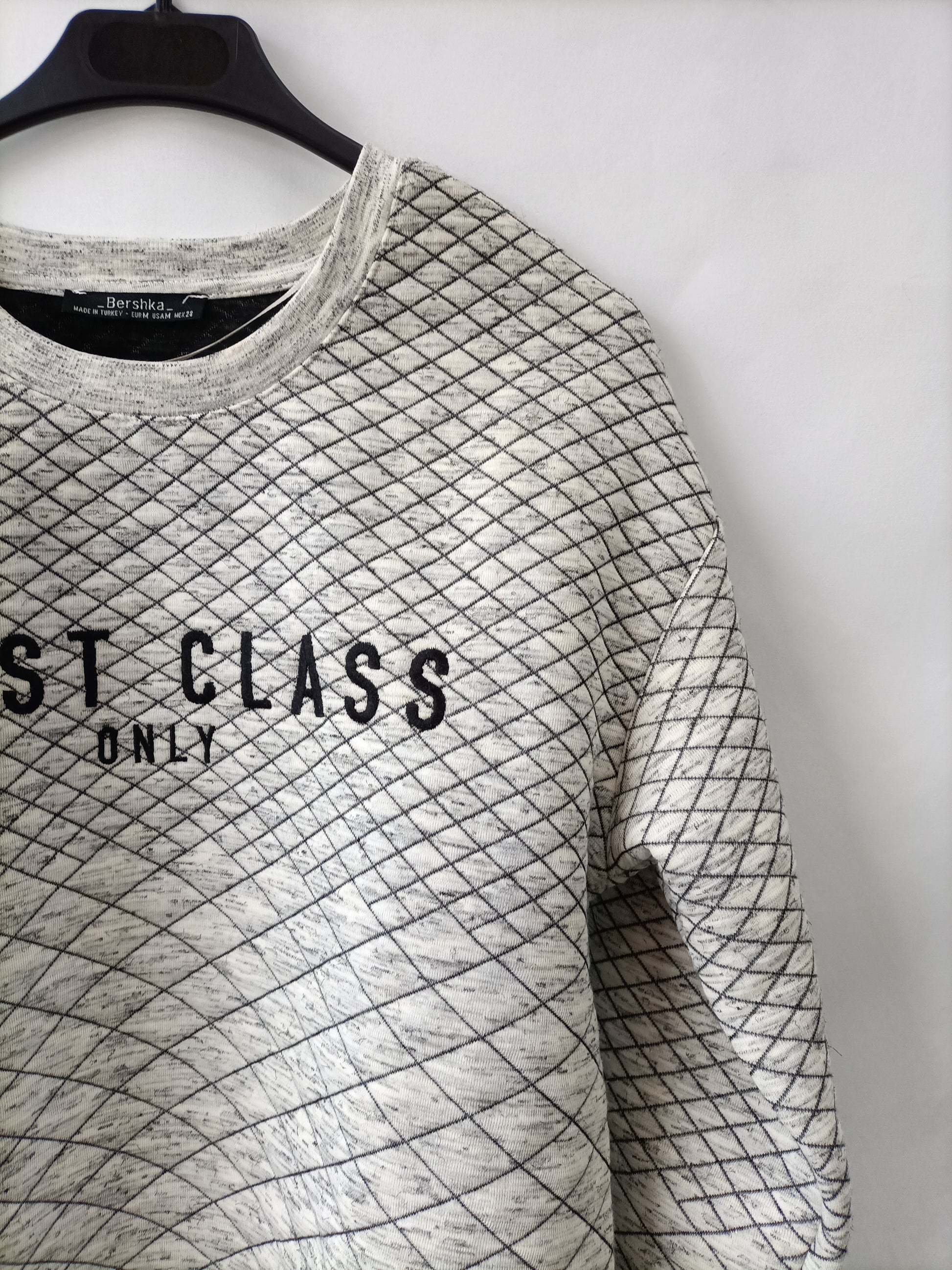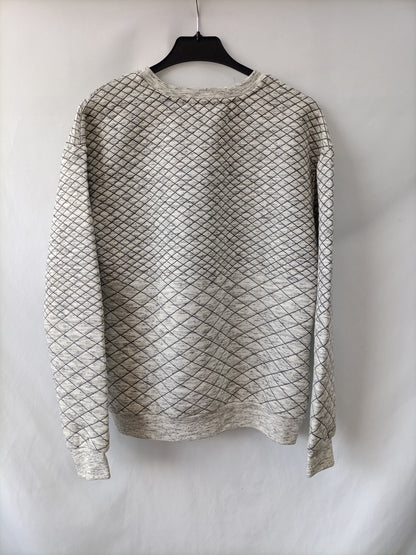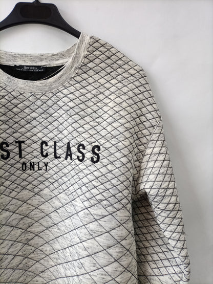 Bershka. Sudadera gris con rombos en diferentes tamaños. Gordita y elástica. Largo 62 cm