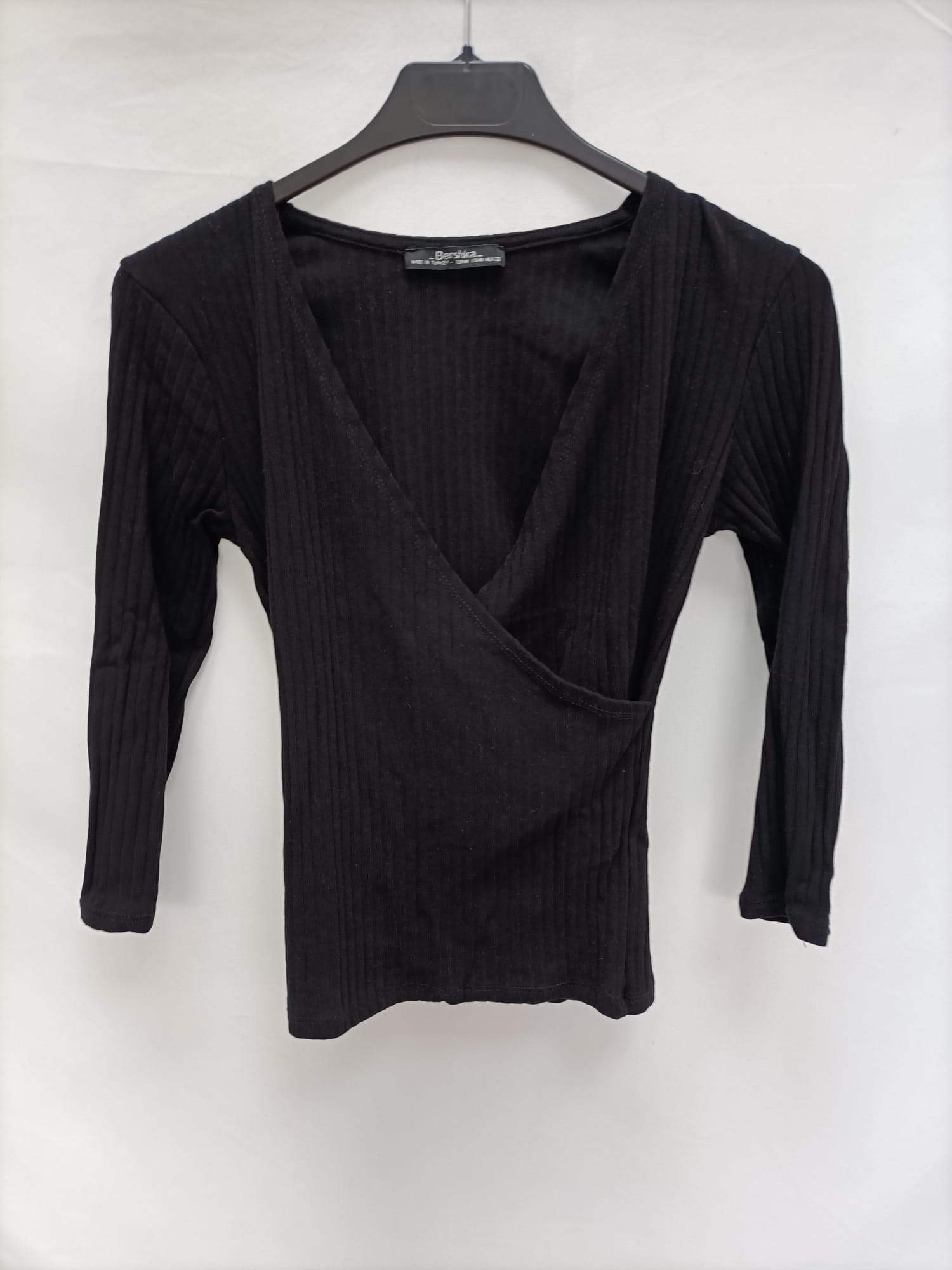 Top negro de canalé cruzado. Cortita y elastico. Largo 50 cm