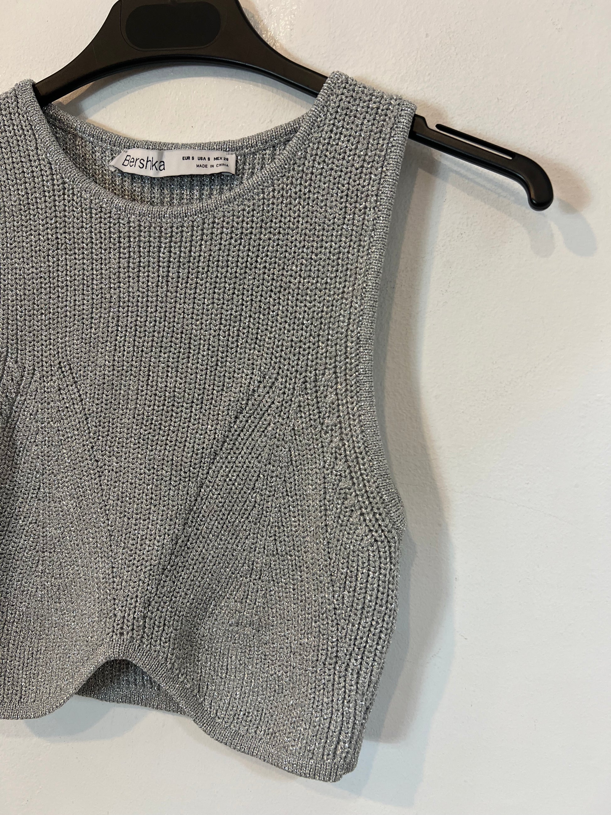 BERSHKA. Top gris hilos T.s