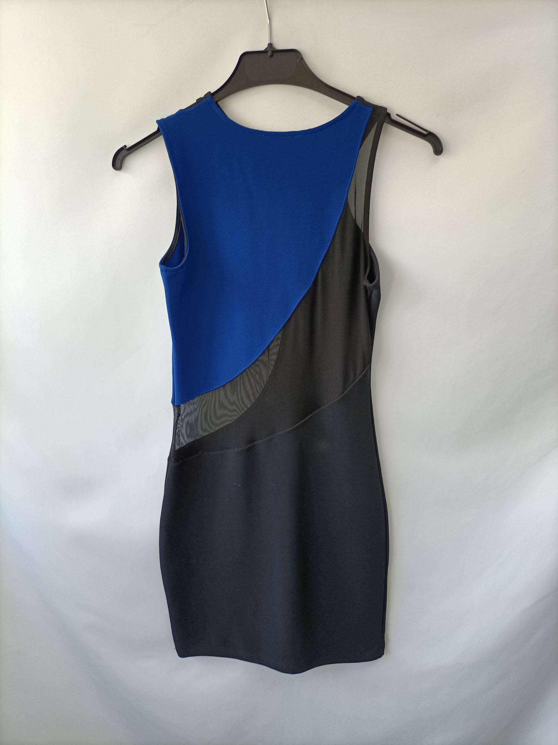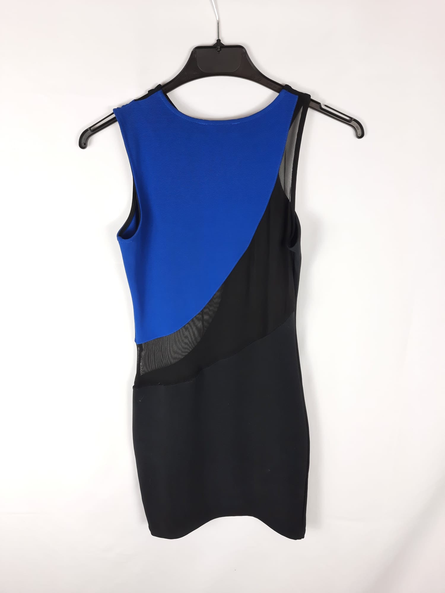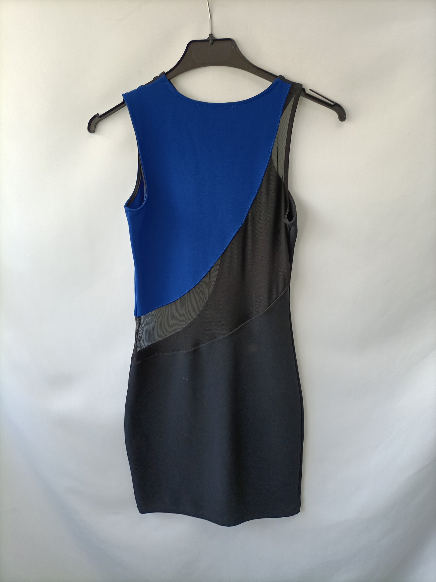 BERSHKA. vestido bicolor tirantes y trasparencia T.s