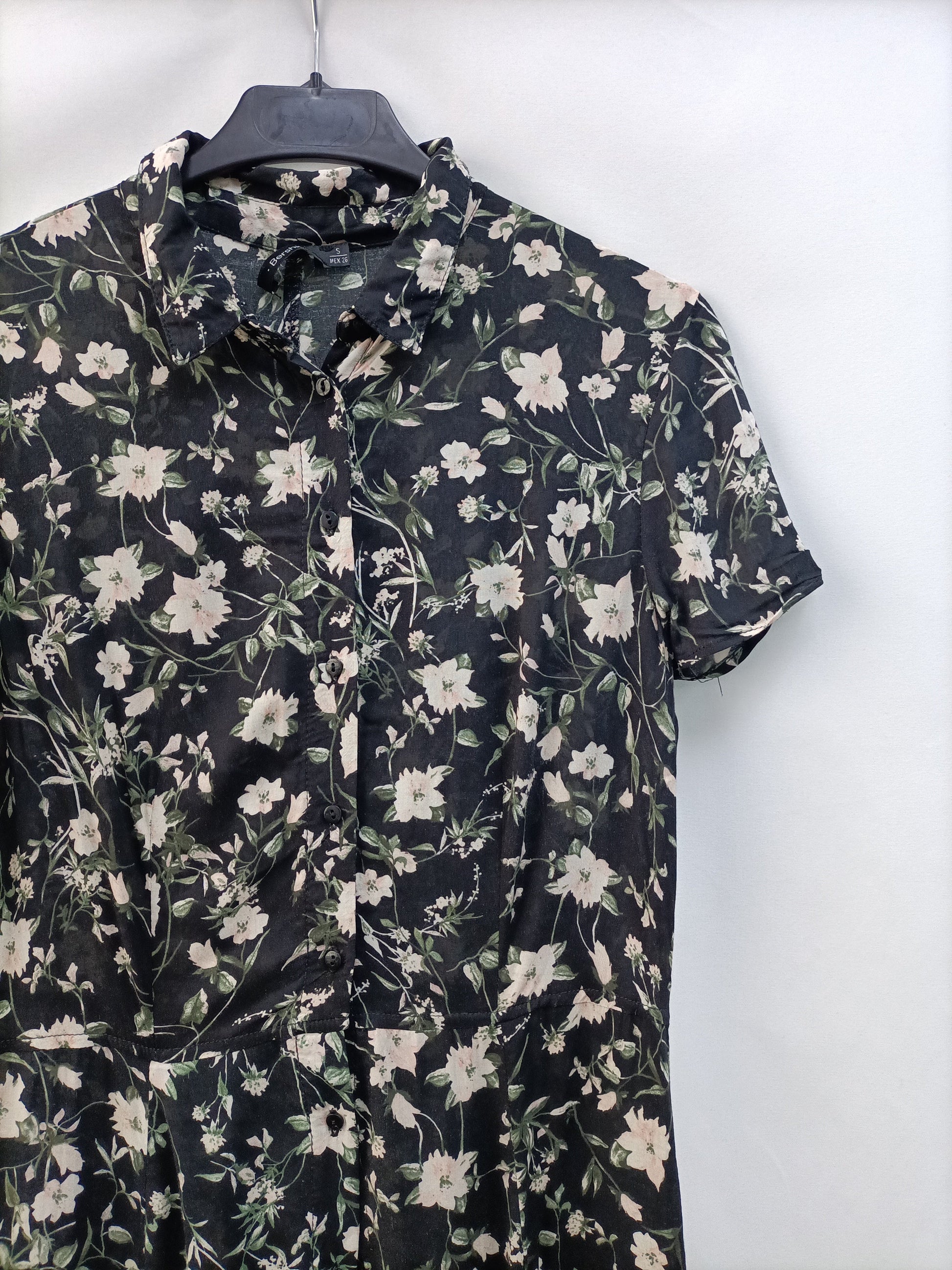 BERSHKA.Vestido largo camisero T.s