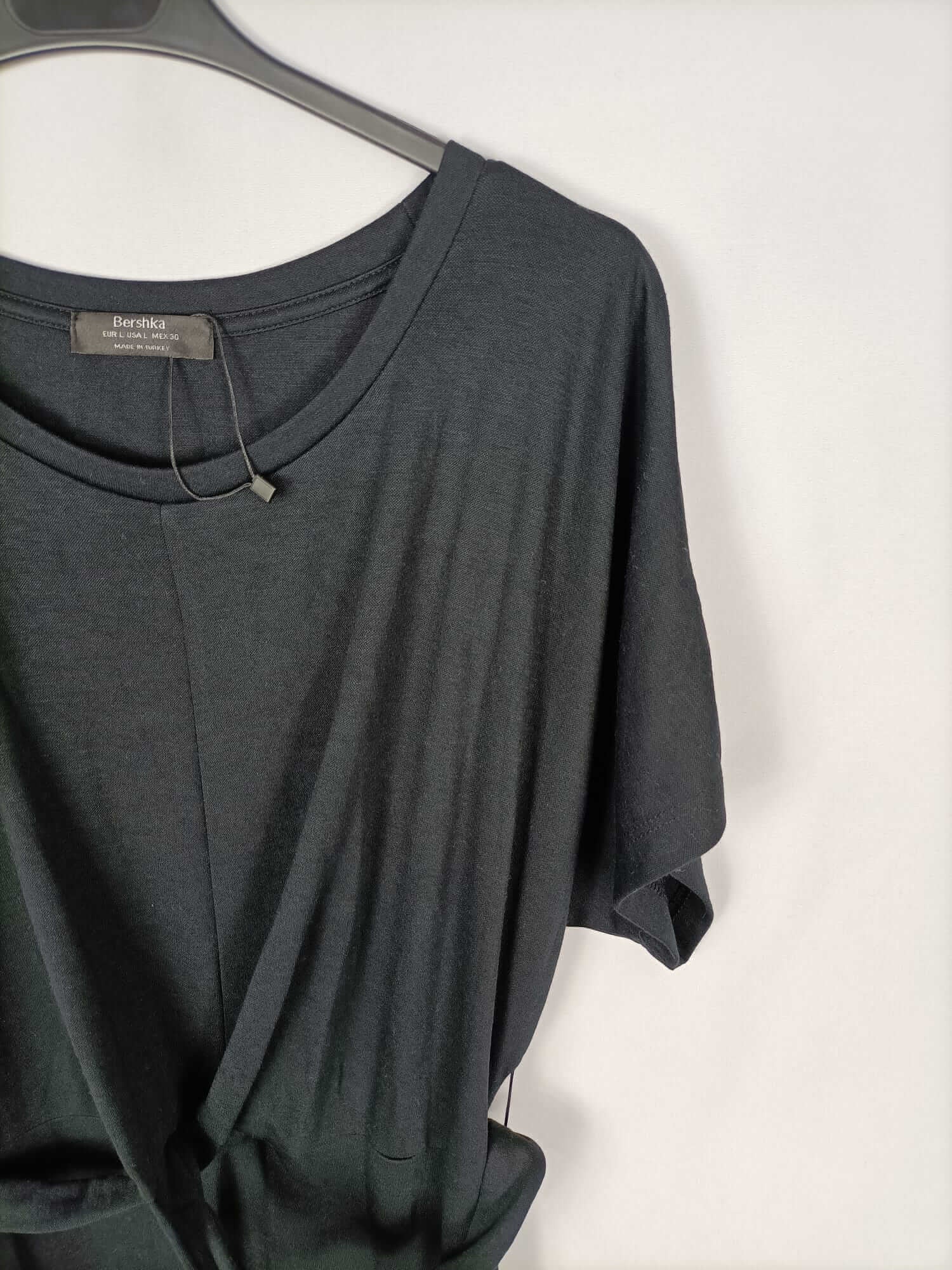 Bershka.l. vestido largo negro con lazada y cruzada por delante. Elástico y fluido. Largo 126 cm