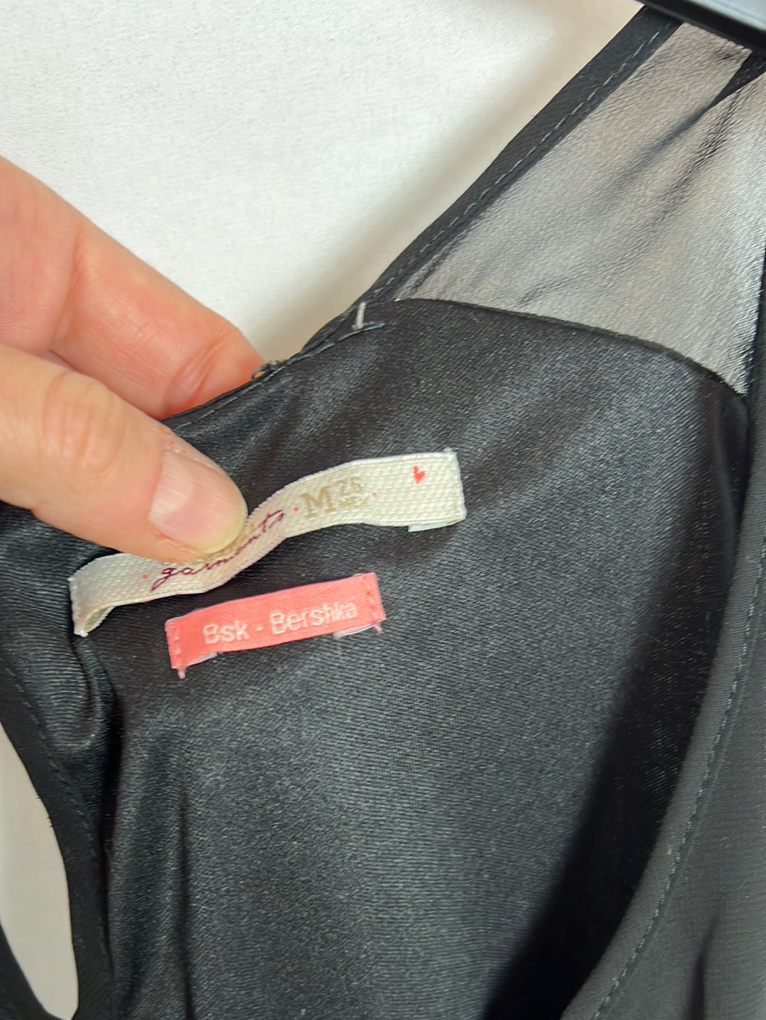 Vestido negro corto volantes y cintura elástica ,de sisa a sisa 42cm, largo 82cm