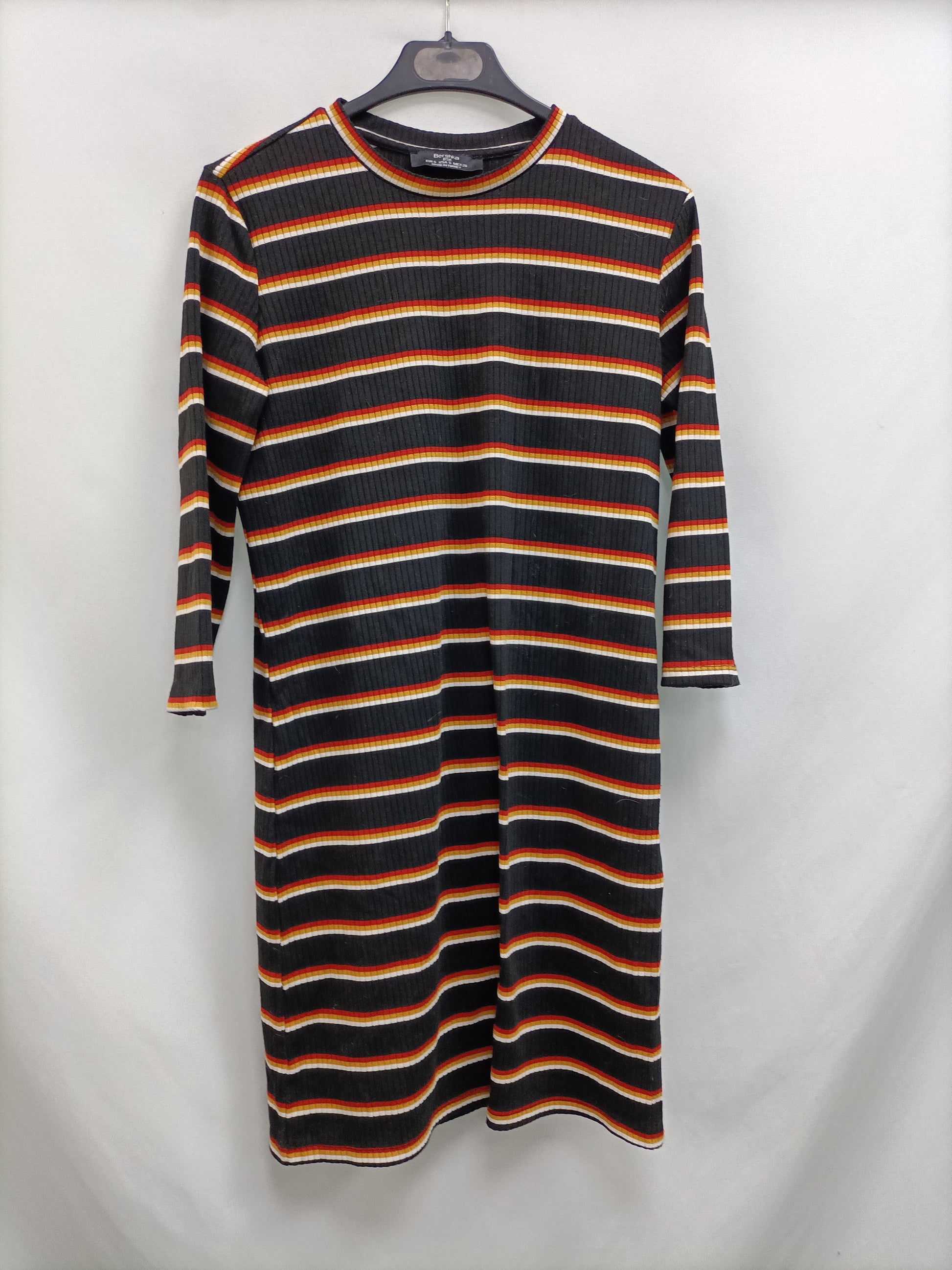 vestido corto negro con rayas. elástico de canalé . largo cm