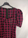 BERSHKA. Vestido negro y rosa cuadros T.s
