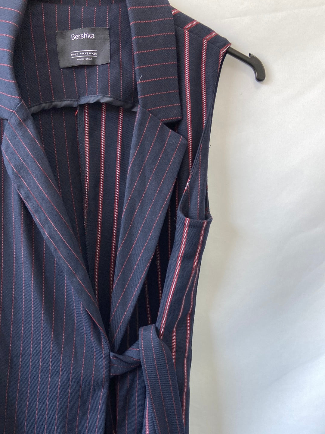 Vestido cruzado estilo blazer sin mangas. Botón y cinturón para abrochar. No elástico. De sisa a sisa 40 cm largo 85 cm