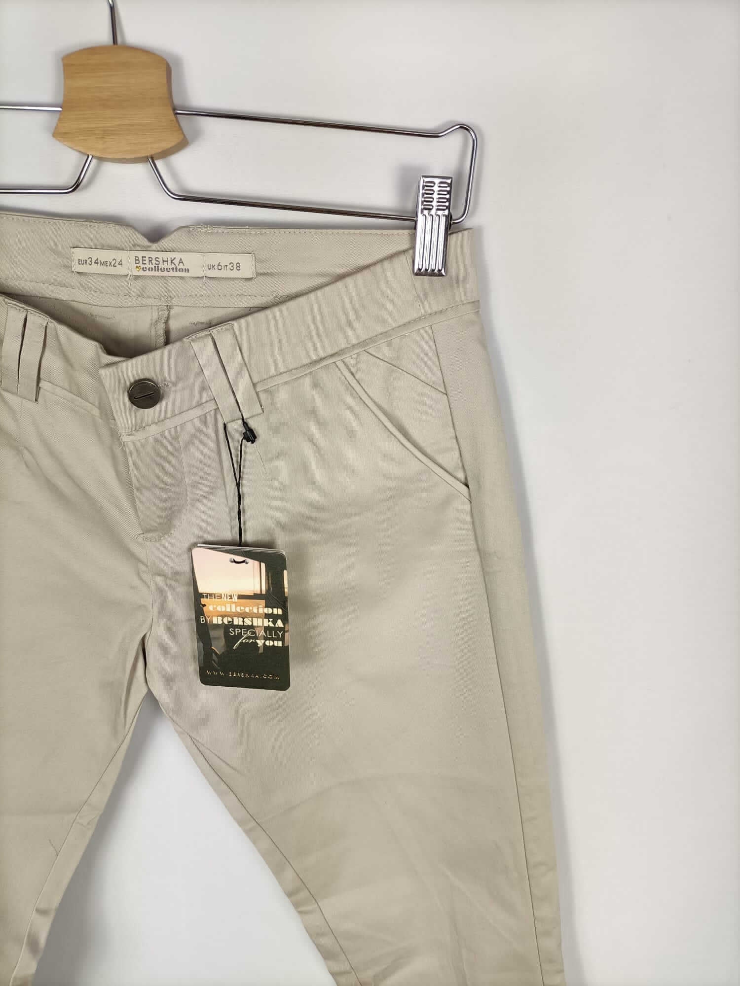 BERSHKA.Pantalones beige T.34