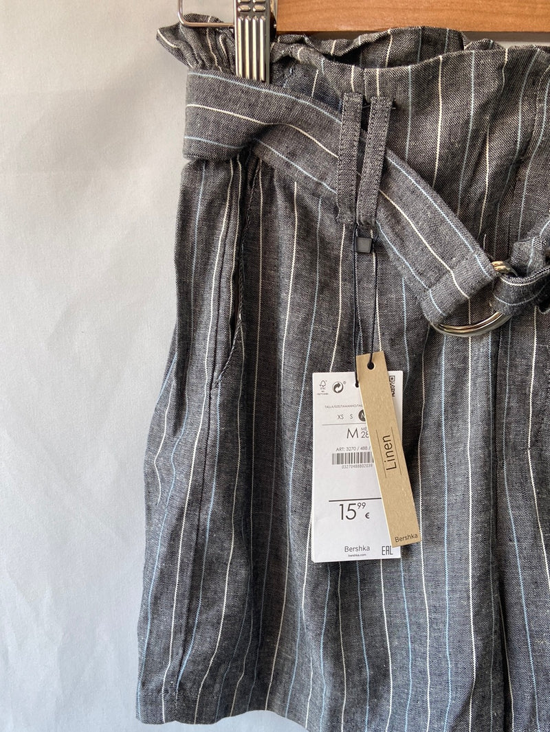 Shorts vestir rayas diplomaticas grises, cintura elástica. Cinturón incorporado. NUEVOS CON ETIQUETA
