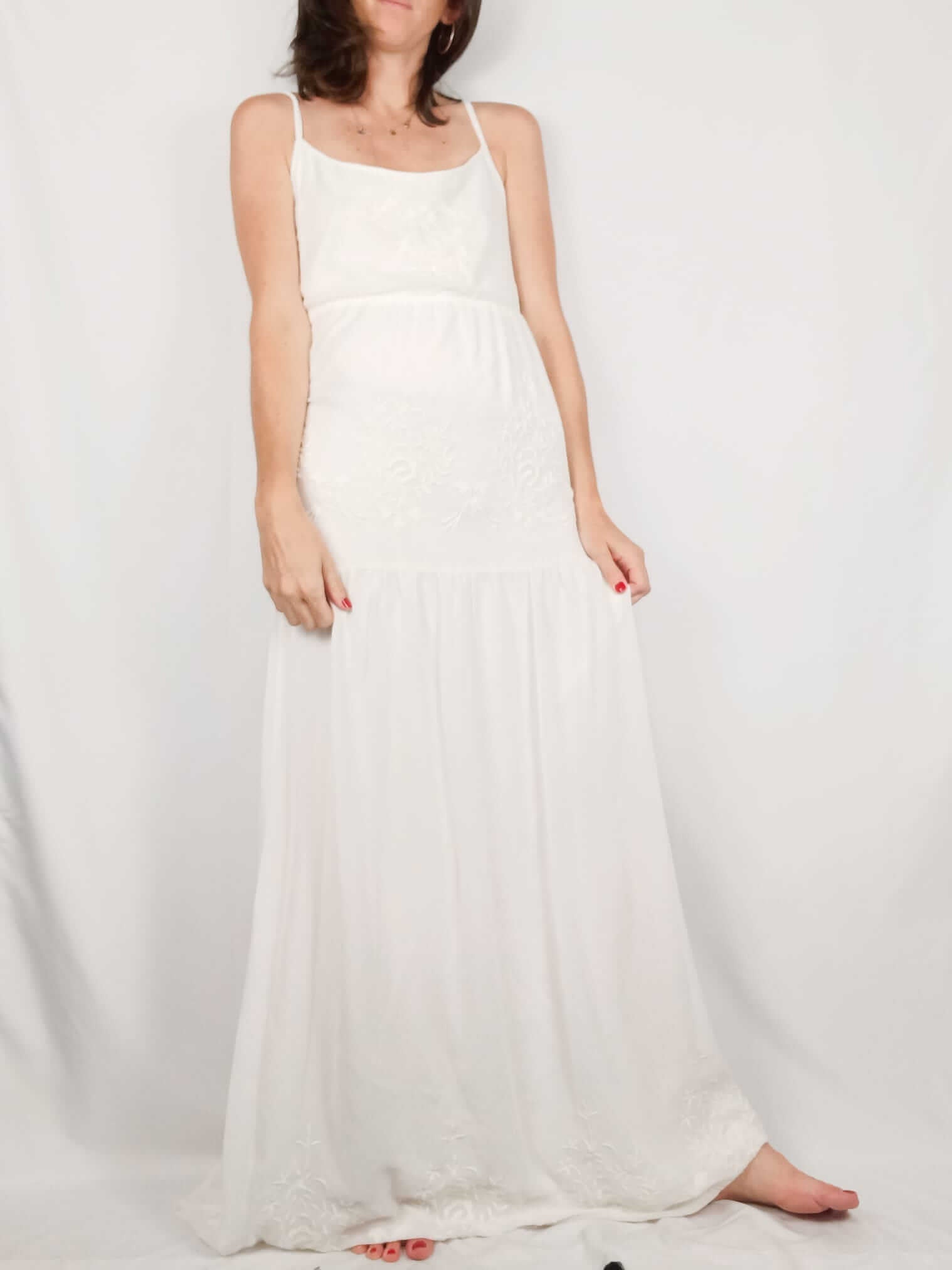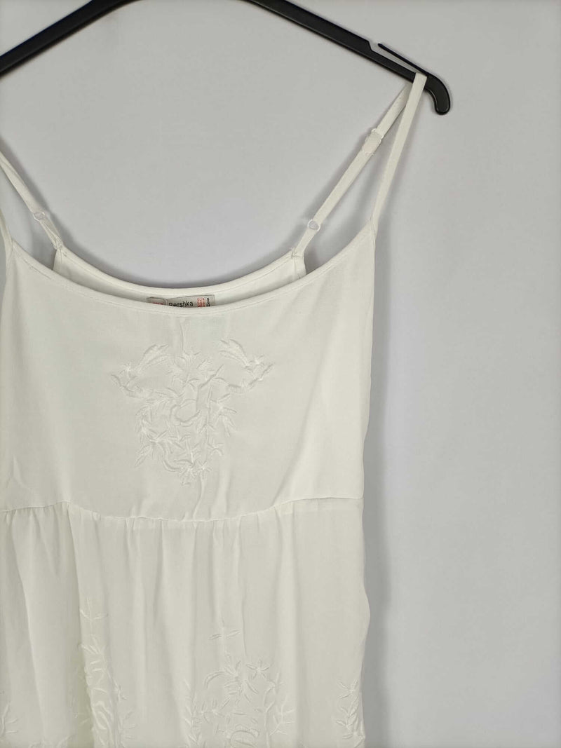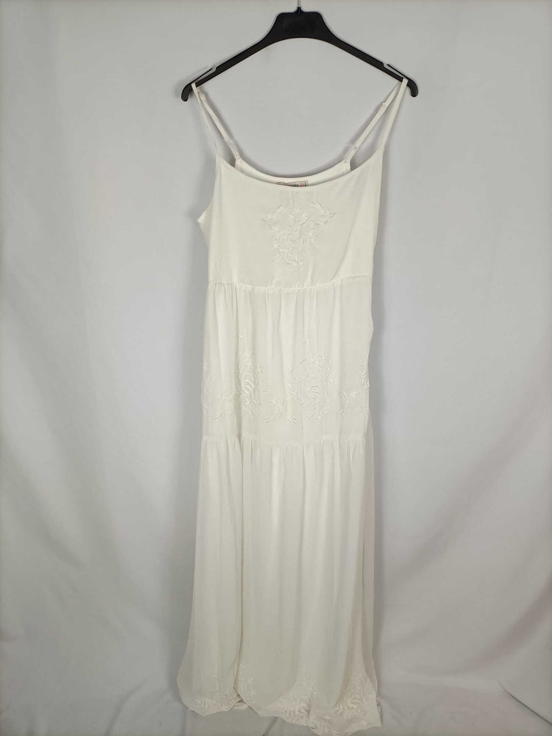 BERSHKA.Vestido largo blanco bordado T.s