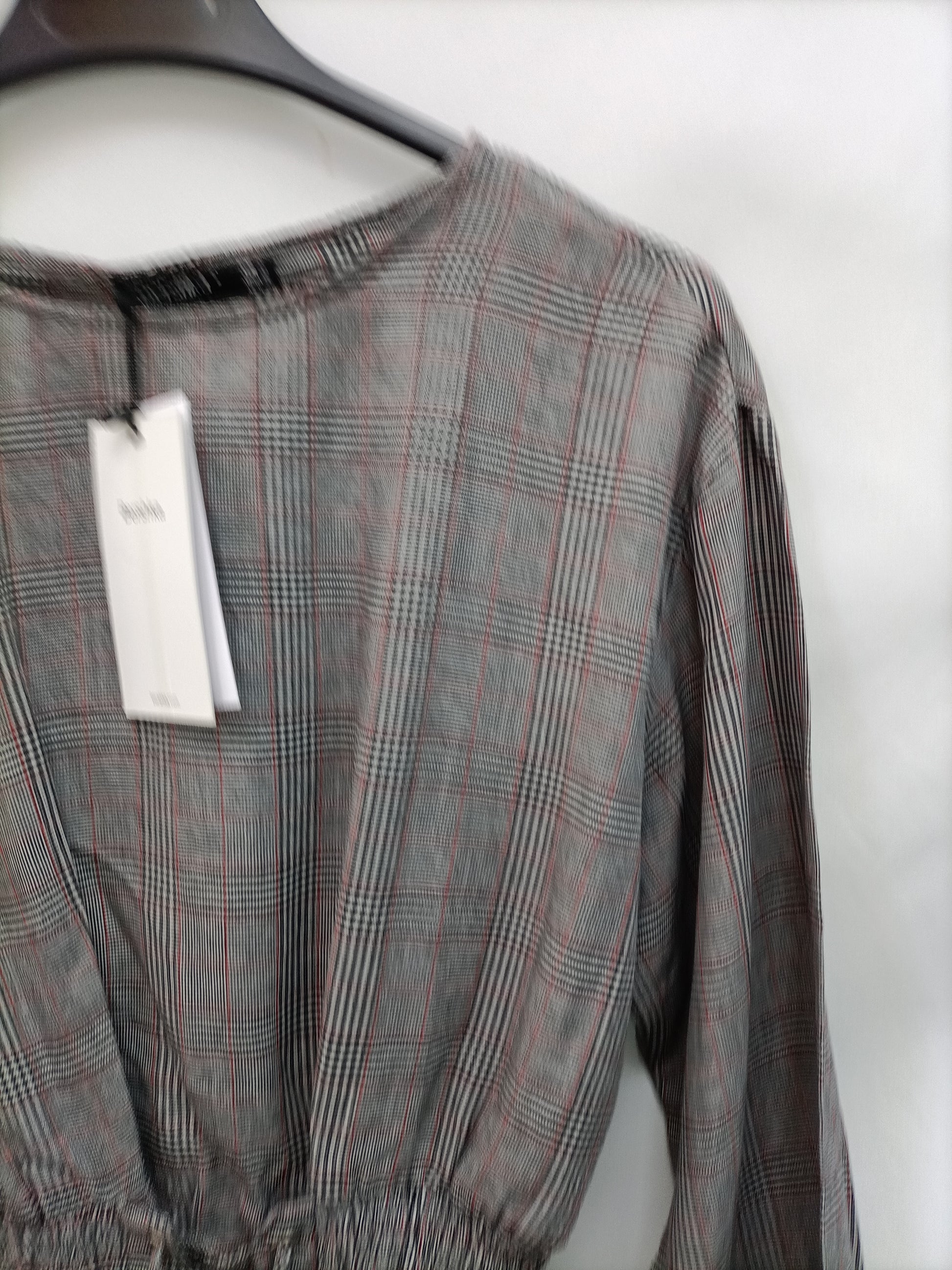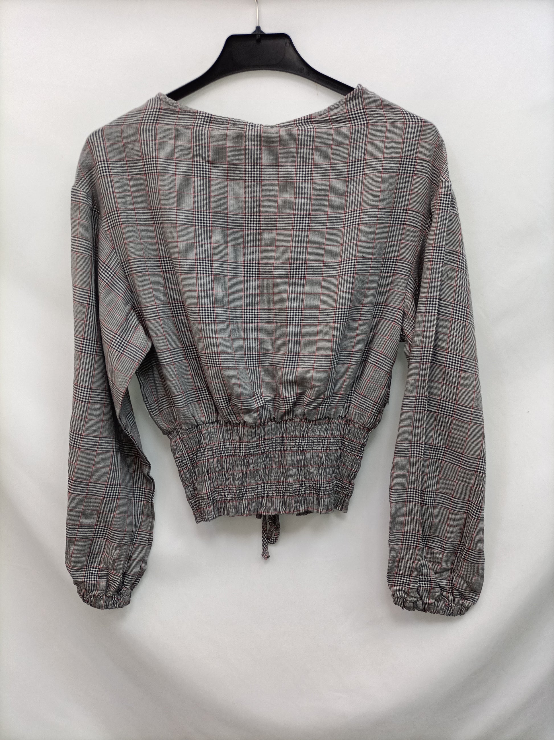 Bershka. NUEVO CON ETIQUETA. Blusa gris de cuadros con cintura elástica tipo corset. De sisa a sisa 45 cm largo 47 cm