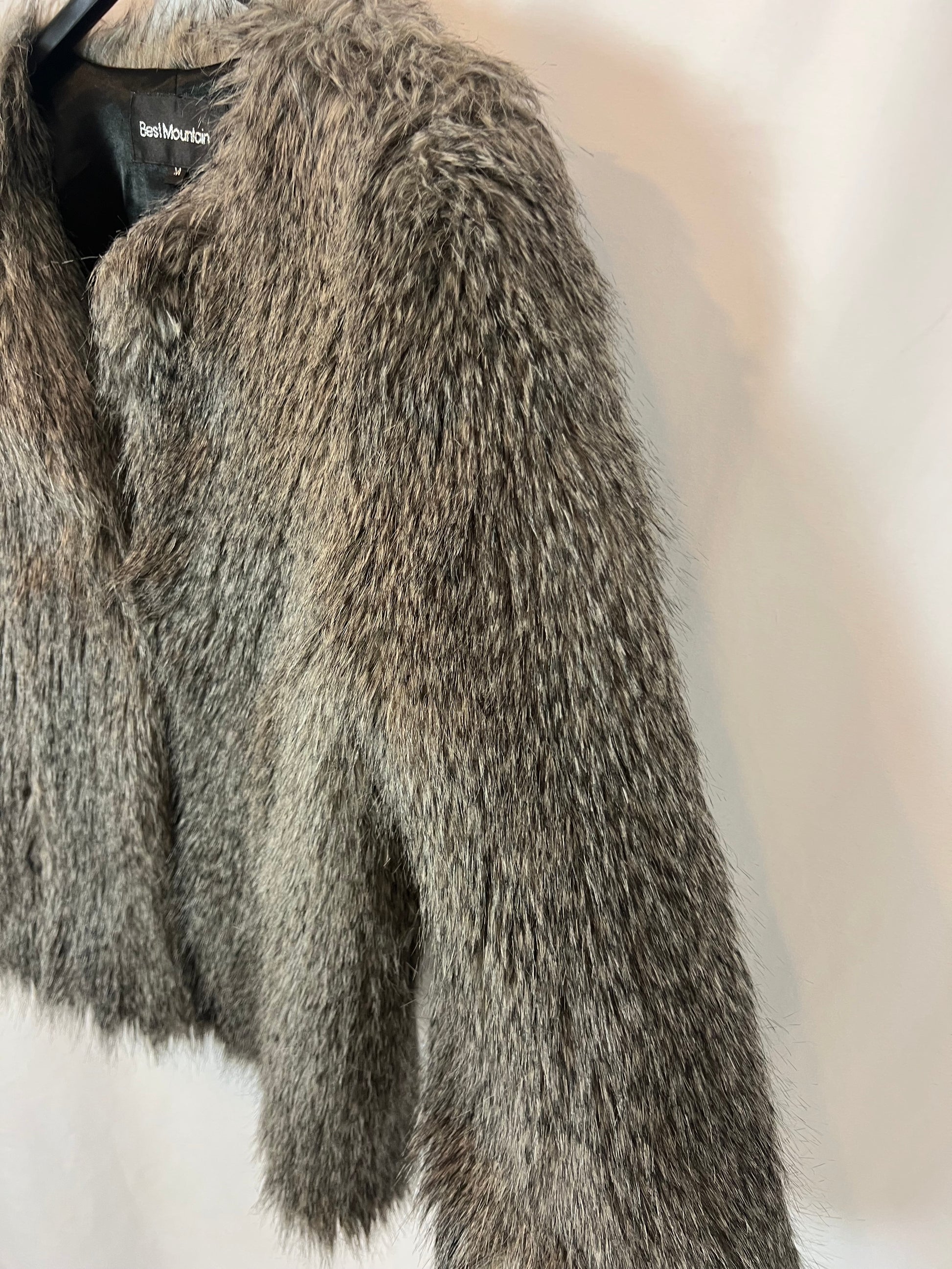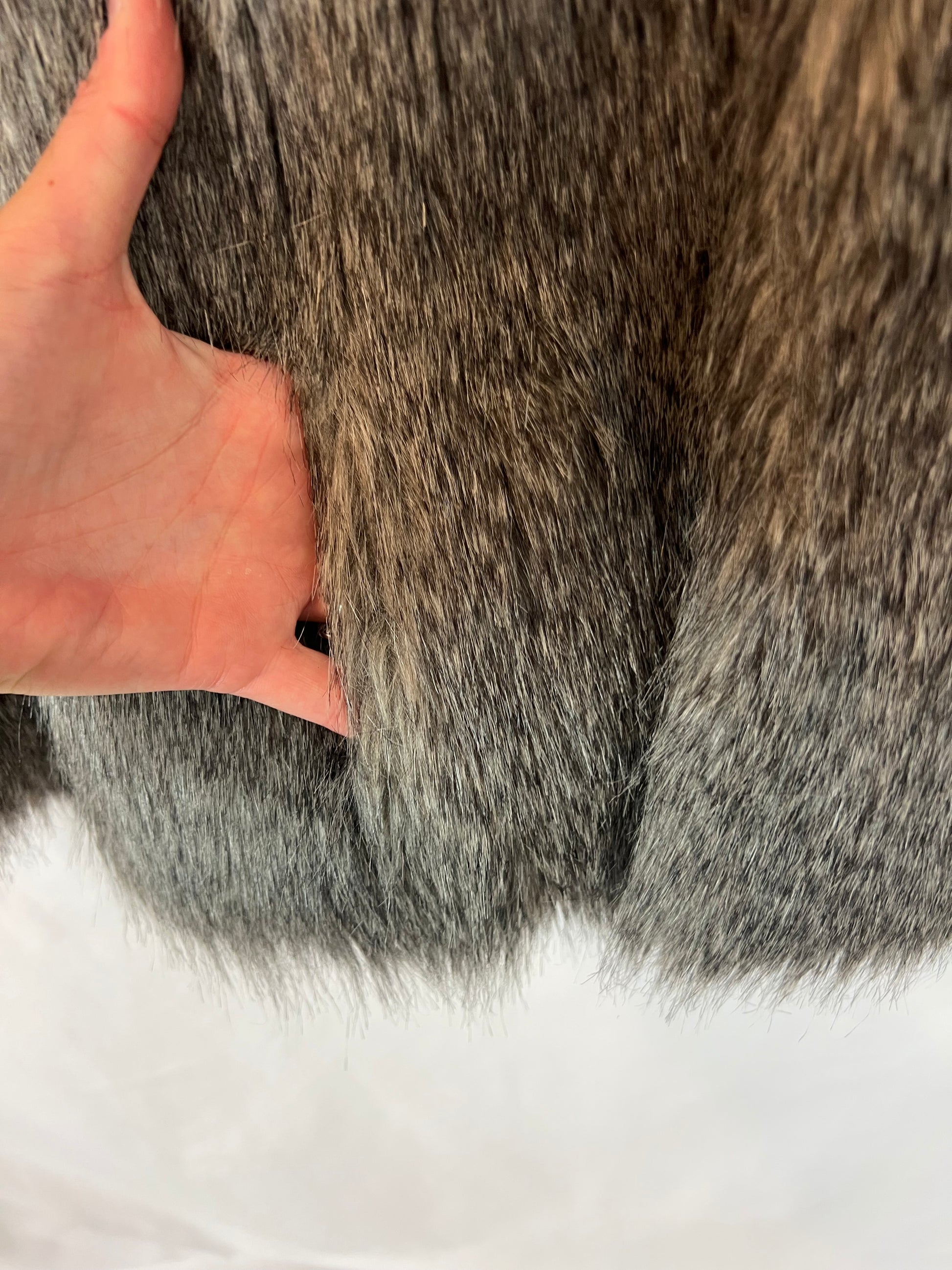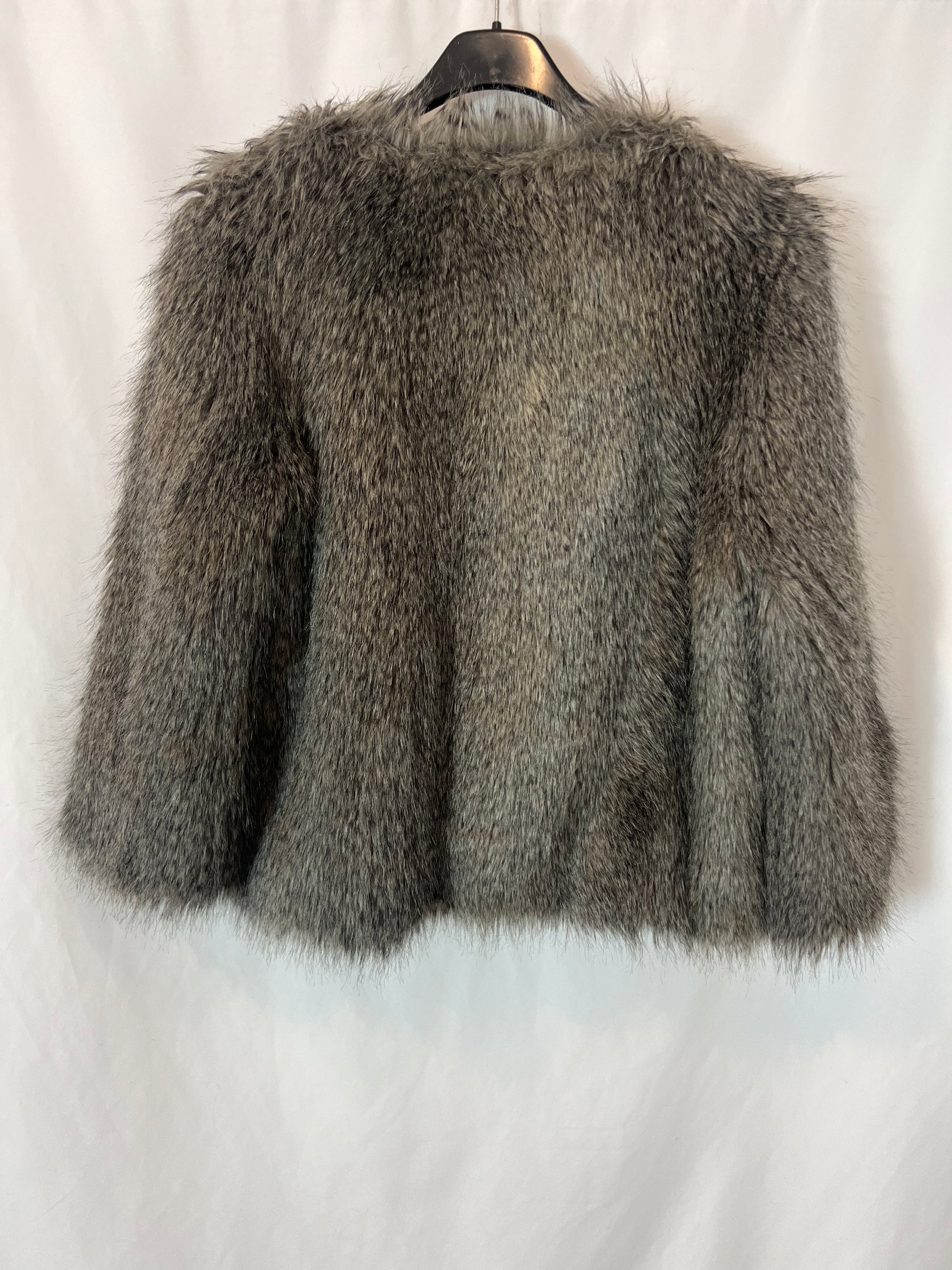 Abrigo corto de pelo gris y negro. Pelo sintético . De sisa a sisa 51ck, largo 55cm