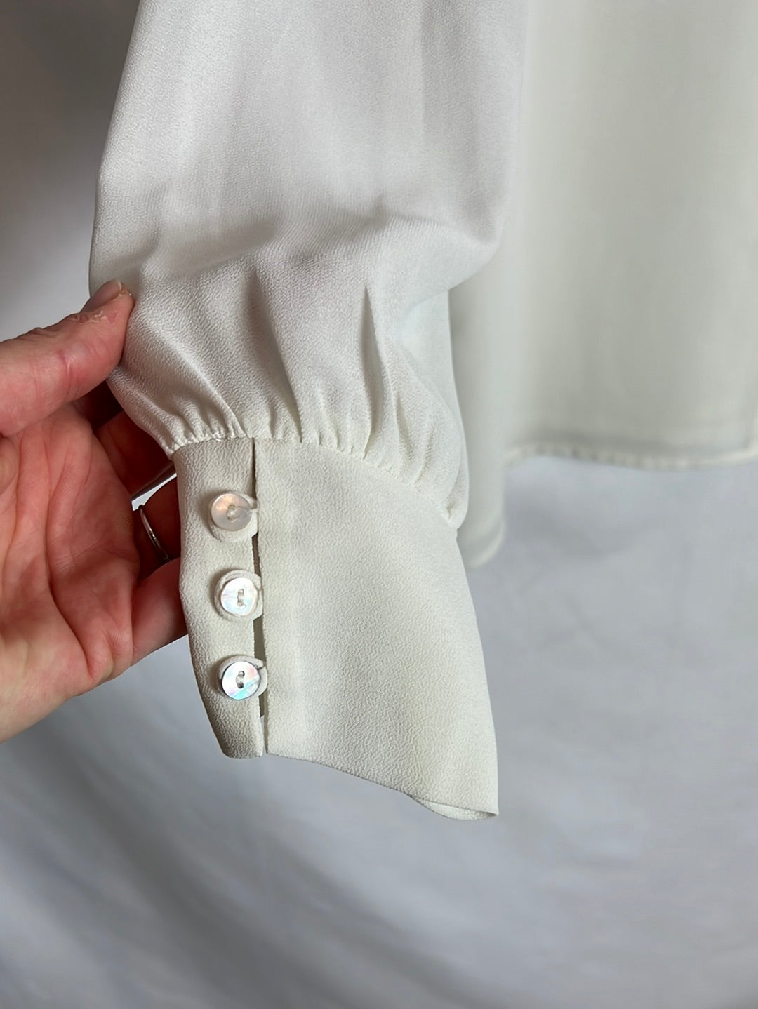 BIOMBO 13. Blusa color crudo botones nacar, hombros 38cm, largo 65cm. Se puede poner con la botonadura delante o detrás