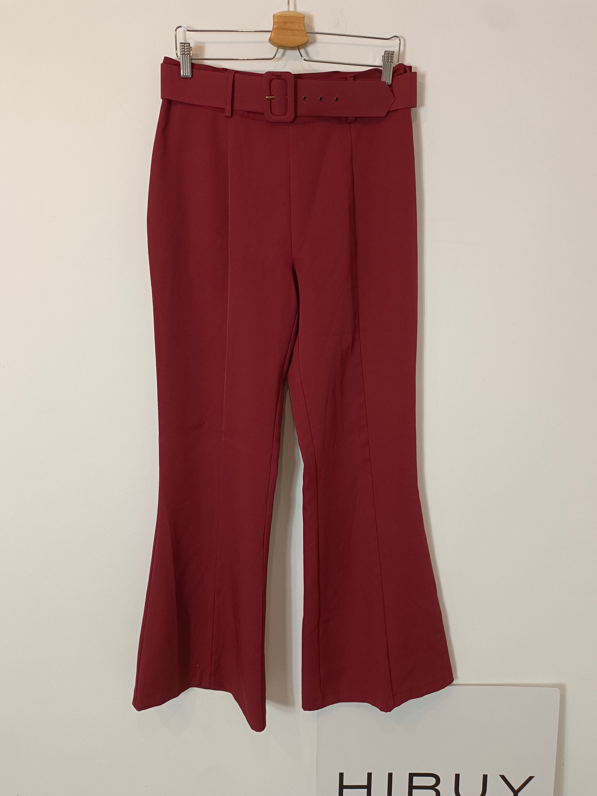 NUEVO CON ETIQUETA. Pantalón burdeos de campana. Tejido semielástico.