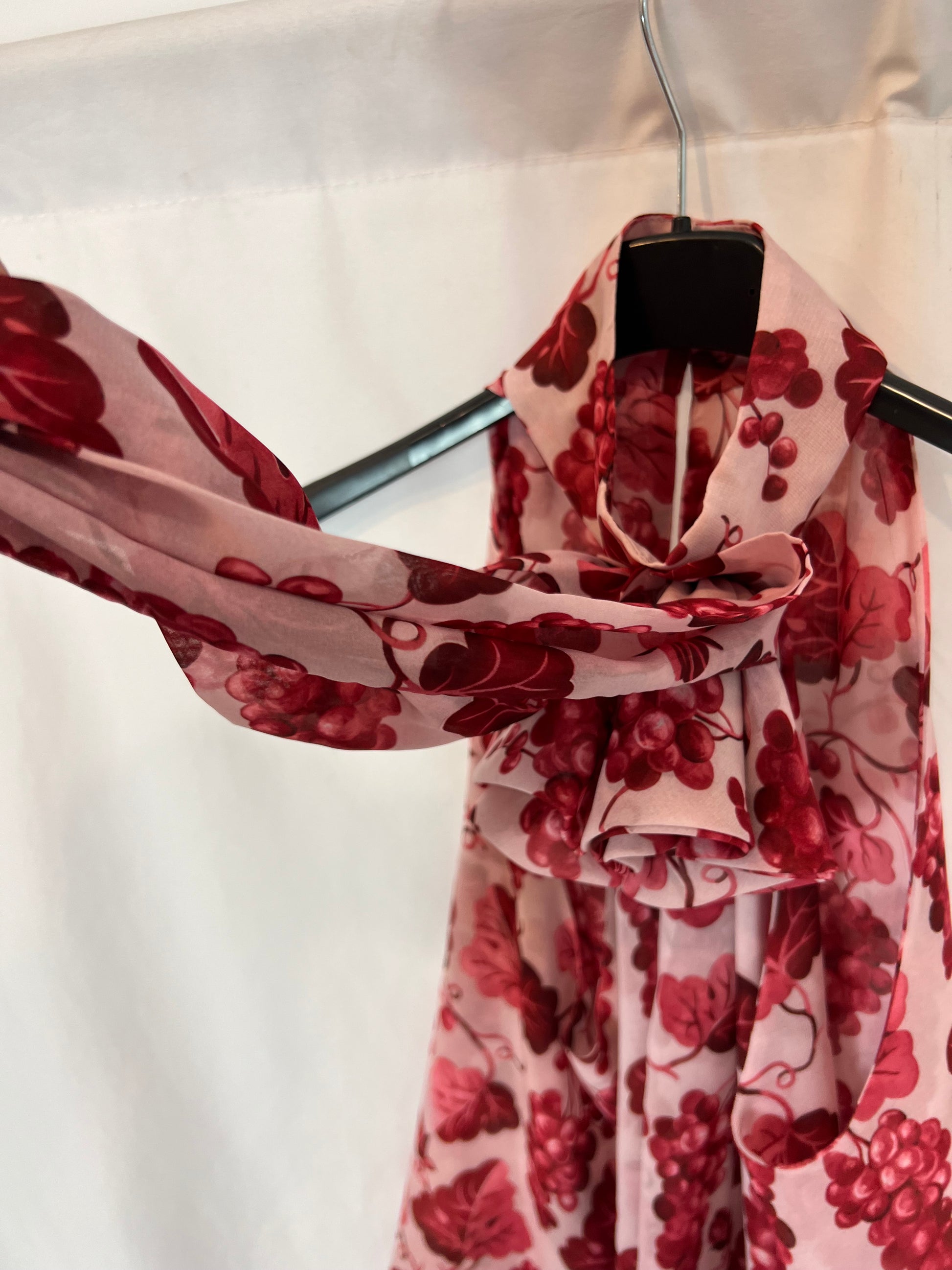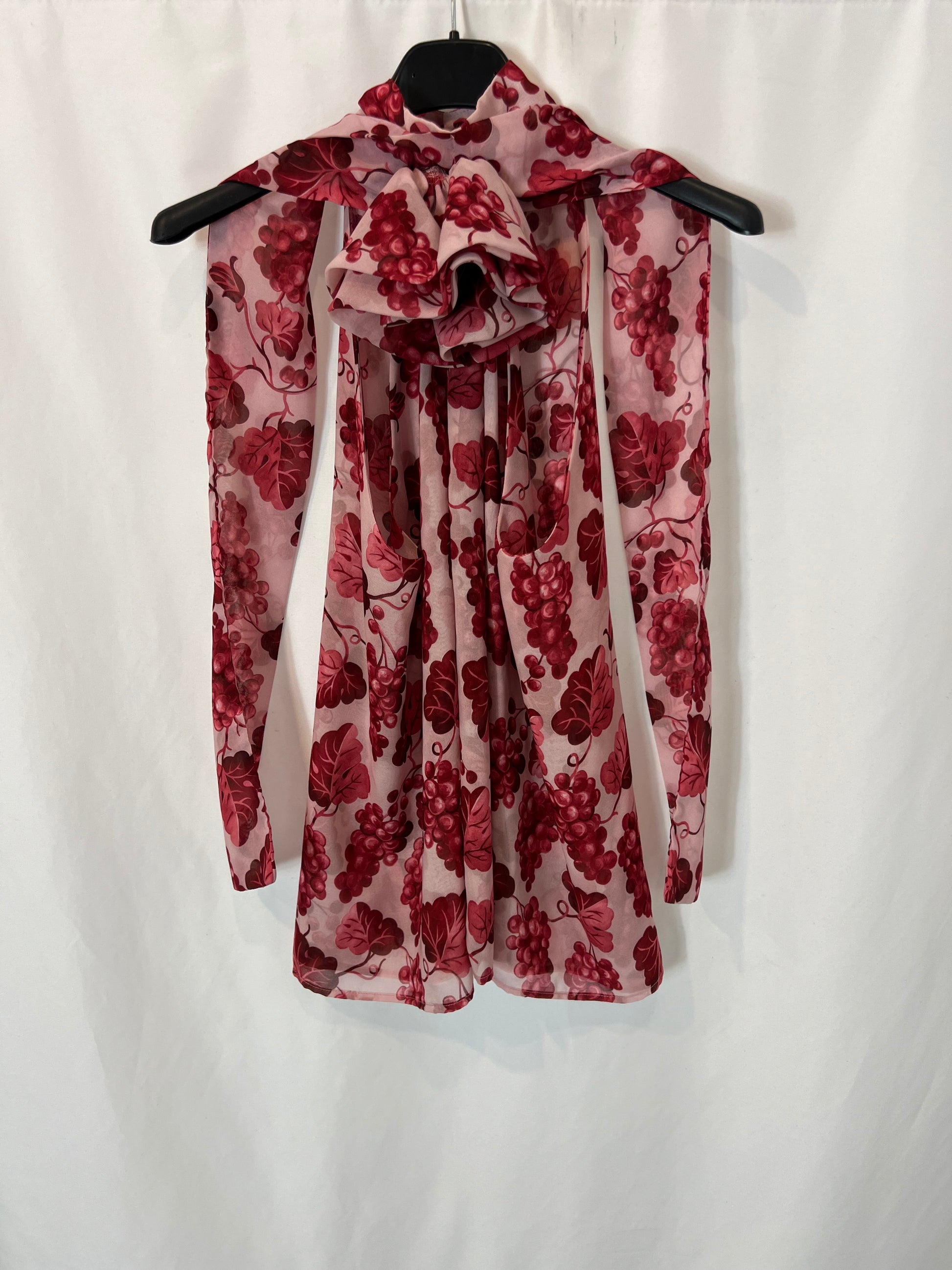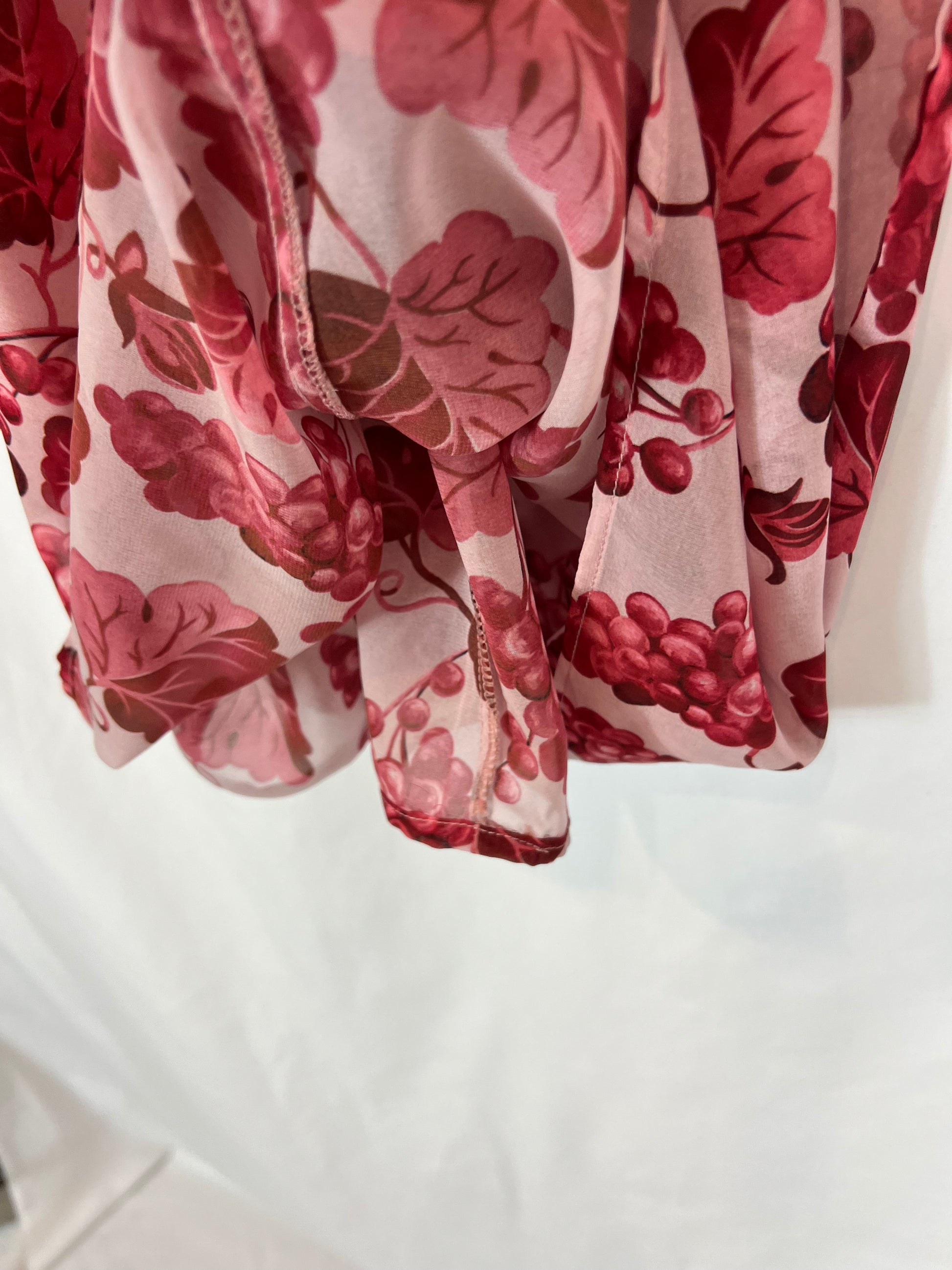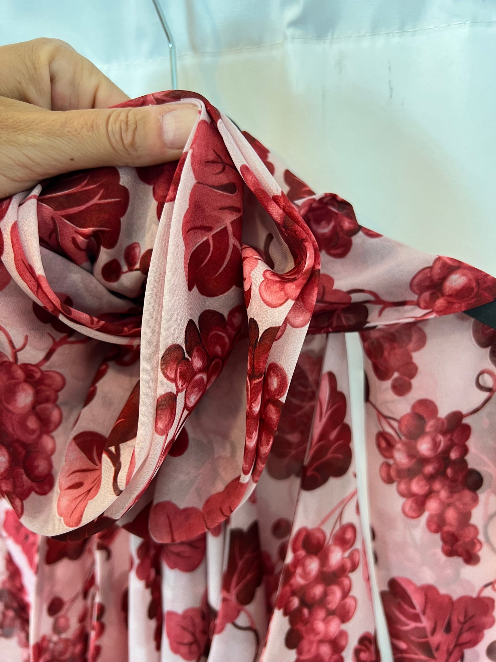 Top rosa con estampado de uvas. Colección Bimani X Juan Vidal.