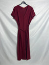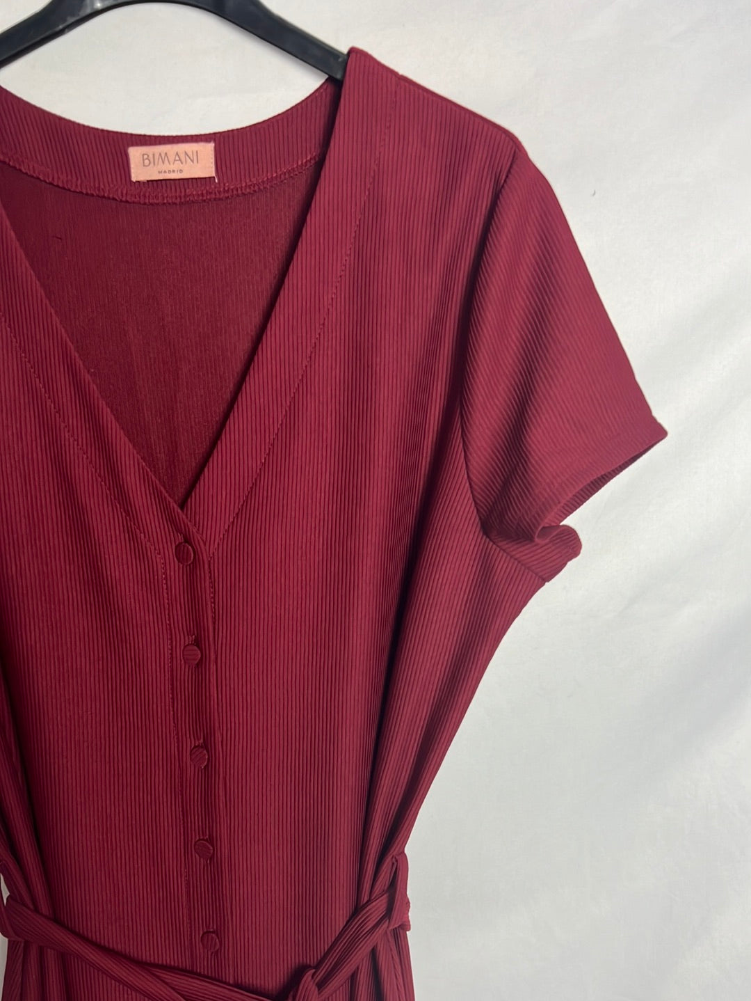 Vestido largo abotonado burdeos con cinturón. Tejido muy poco elástico. Largo 130cmñ, de sisa a sisa 47cm