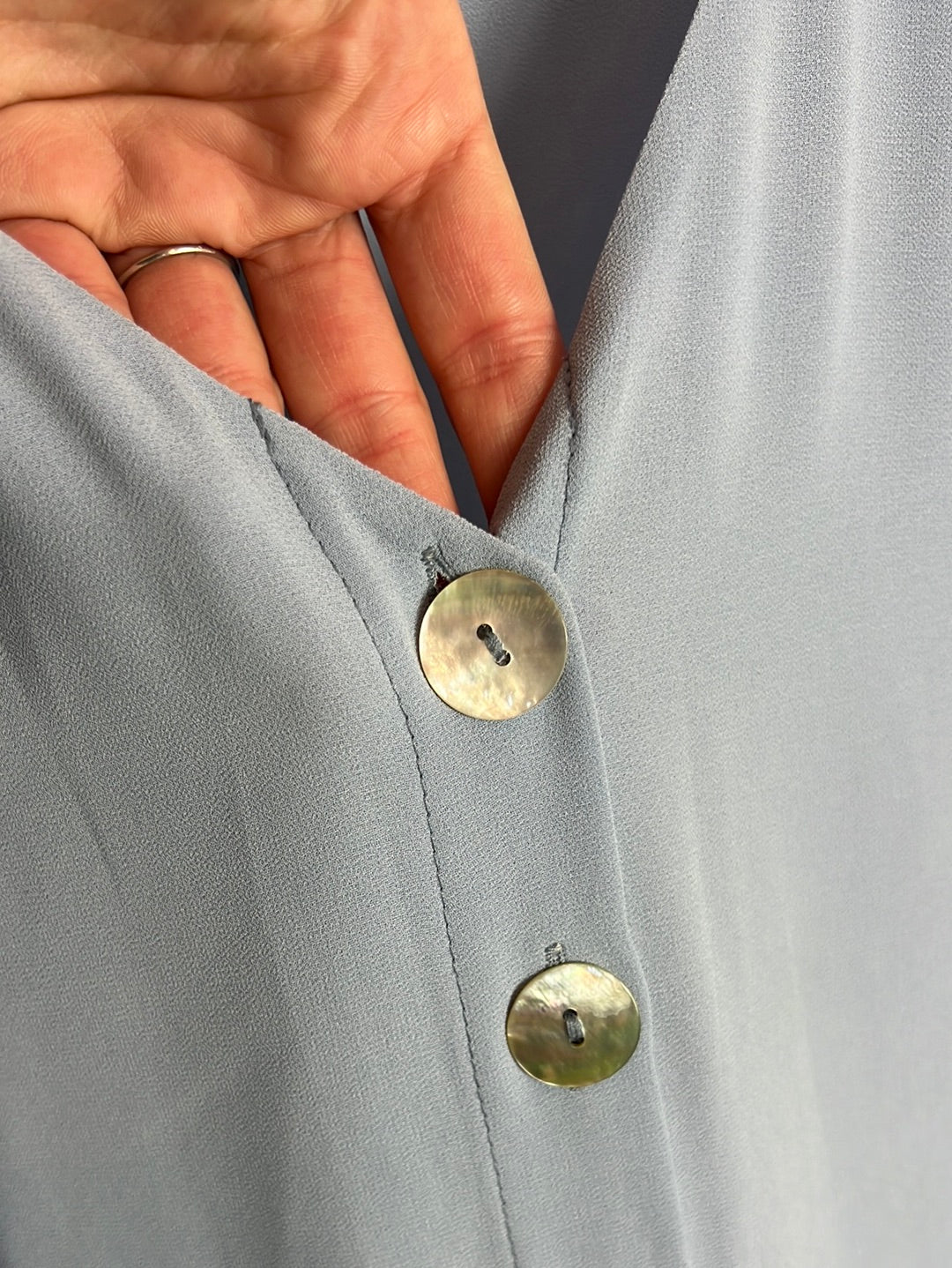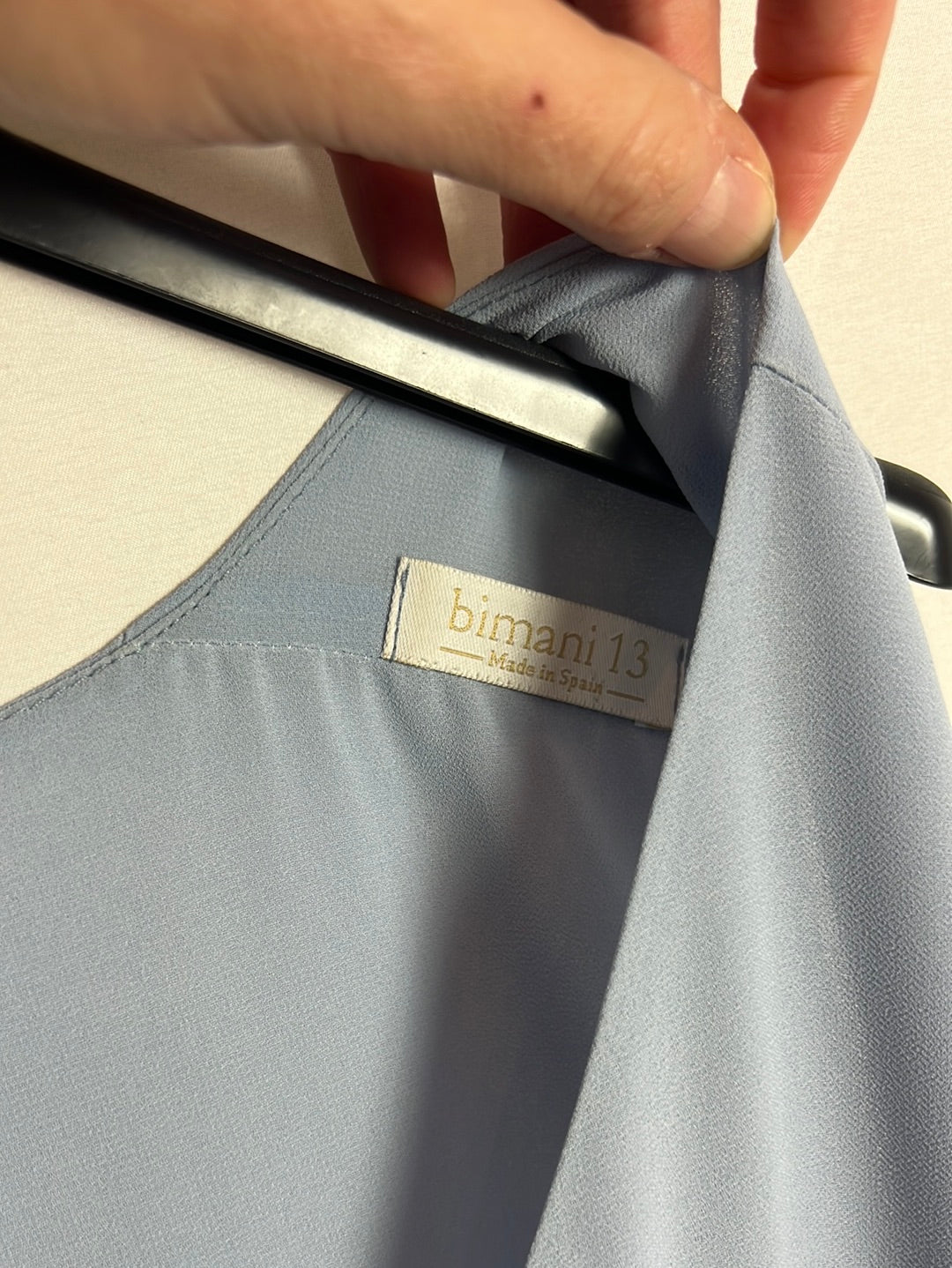 Vestido midi azul caro abotonado. hombros 34cm, de sisa a sisa 46cm, largo 115cm