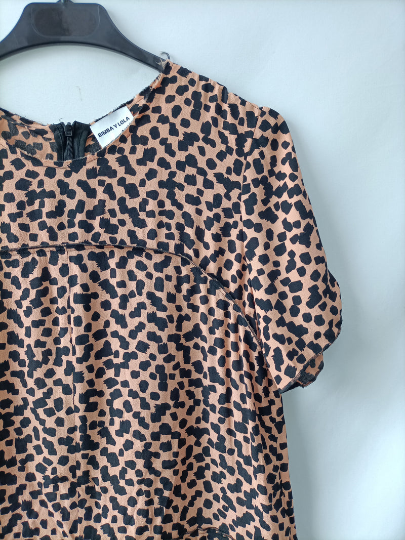Blusa animal print fluida no elástica con cremallera en la espalda. De sisa a sisa 46 cm, largo 60 cm
