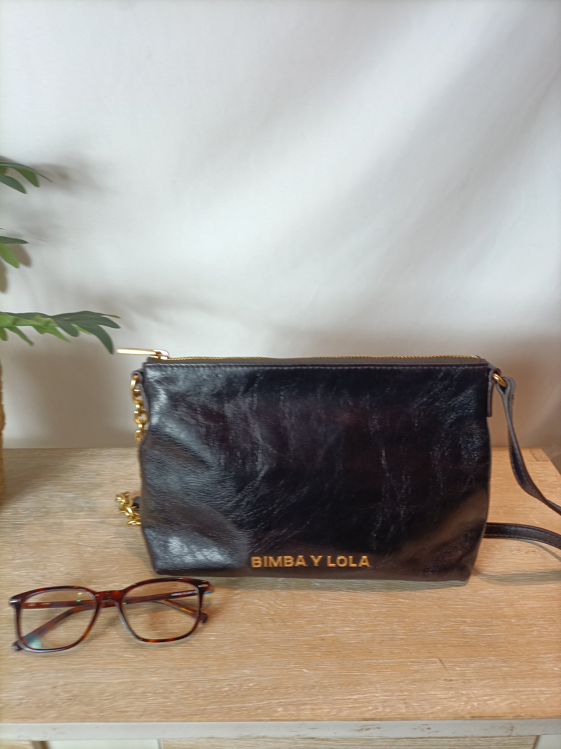 BIMBA Y LOLA. Bolso piel textura marrón oscuro