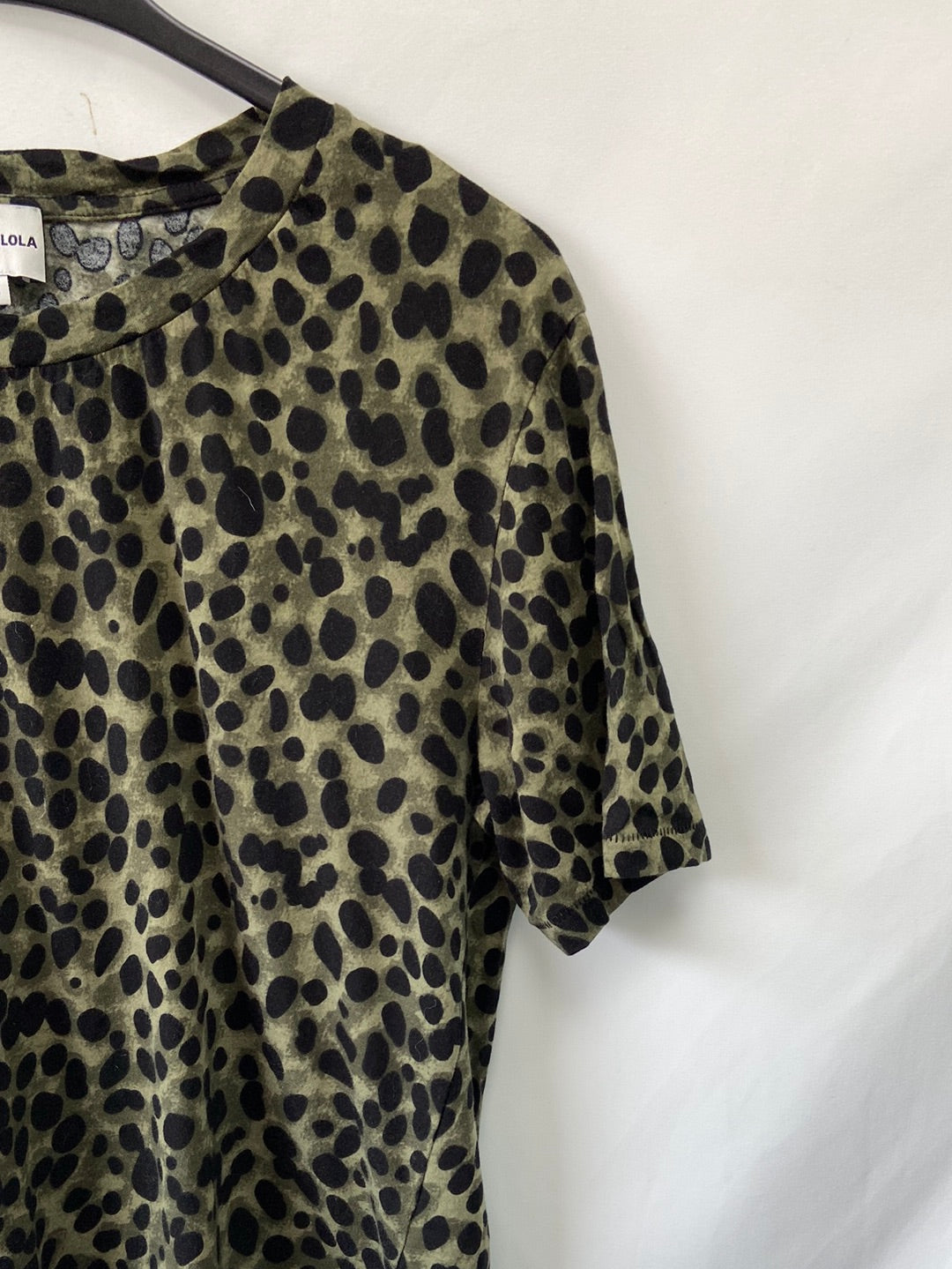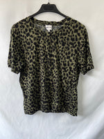 Camiseta verde animal print fluida y elástica. Largo 54 cm