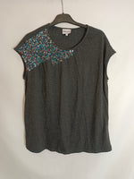BIMBA Y LOLA. Camiseta gris lentejuelas T.m