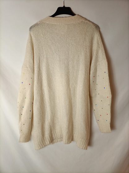 BIMBA Y LOLA. Cárdigan beige pedrería T.m
