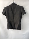 Chaqueta de manda corta estructurada con hombreras. Se abrocha con botones de corchete