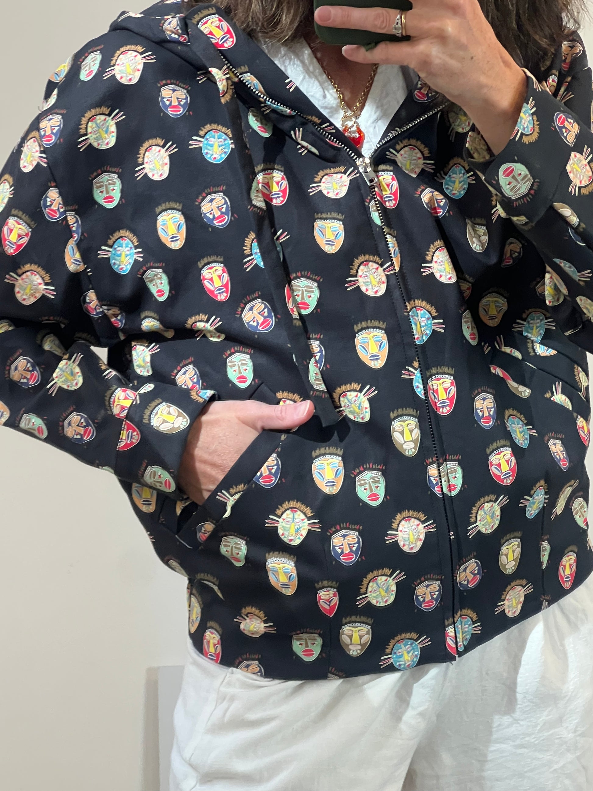 BIMBA Y LOLA. Chaqueta negra capucha caras. T S