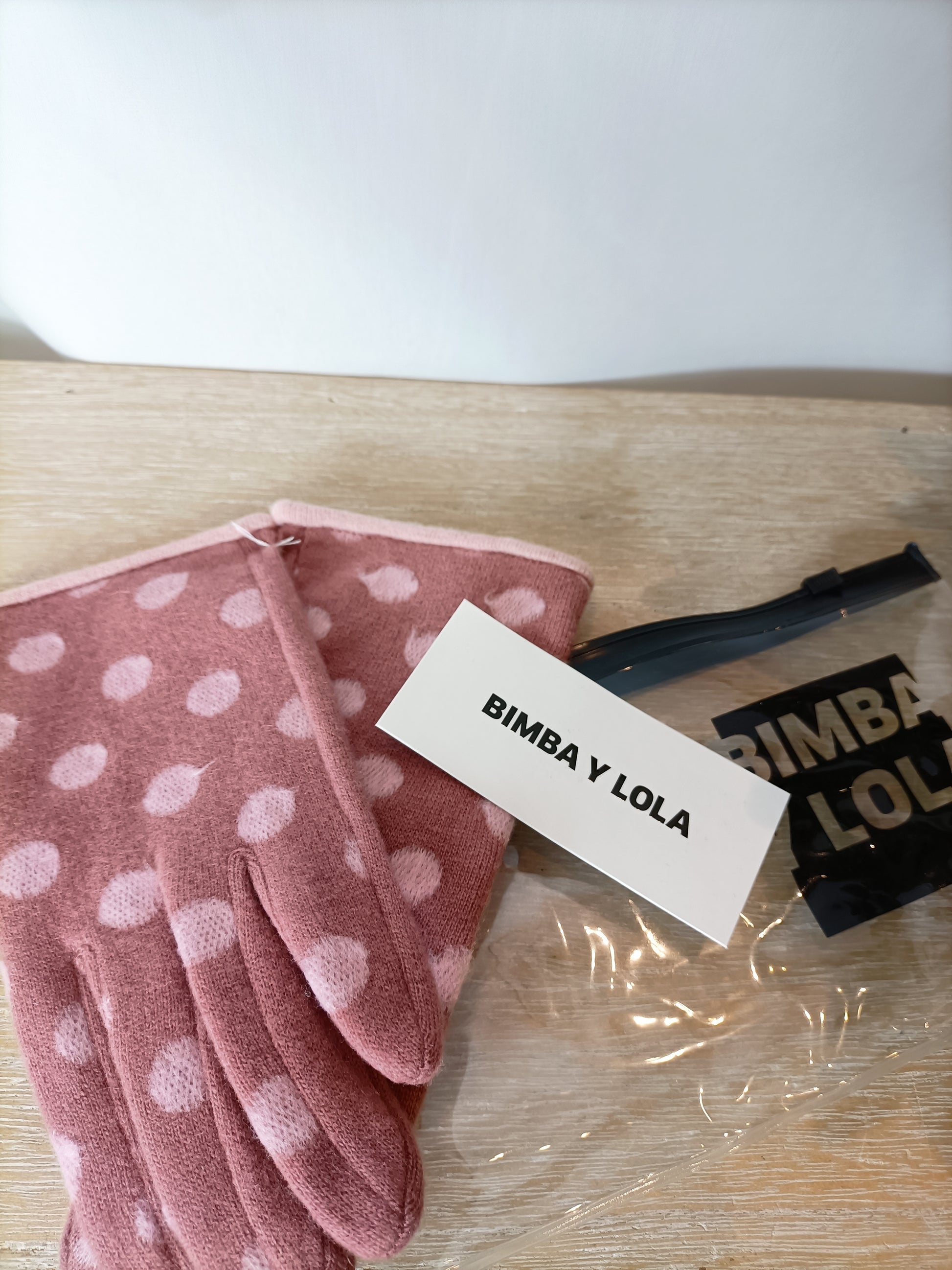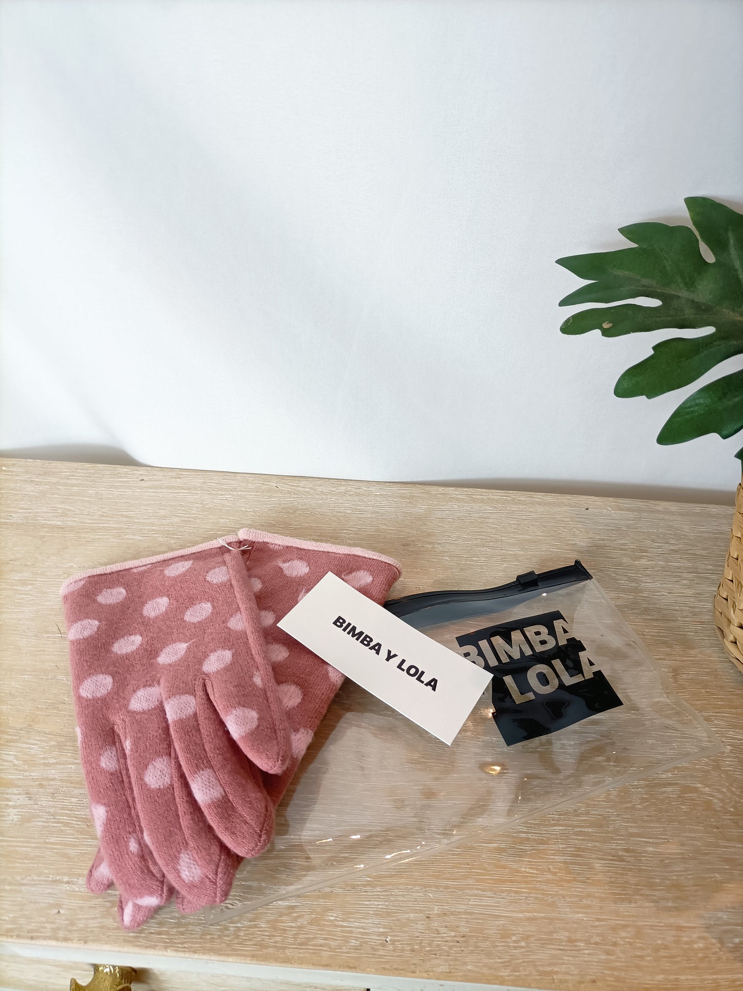 BIMBA Y LOLA. Guantes rosas lunares. T M