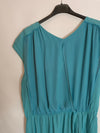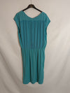 vestido corto (por la rodilla) azul cruzado de tejido fino y fluido. Cintura elástica.