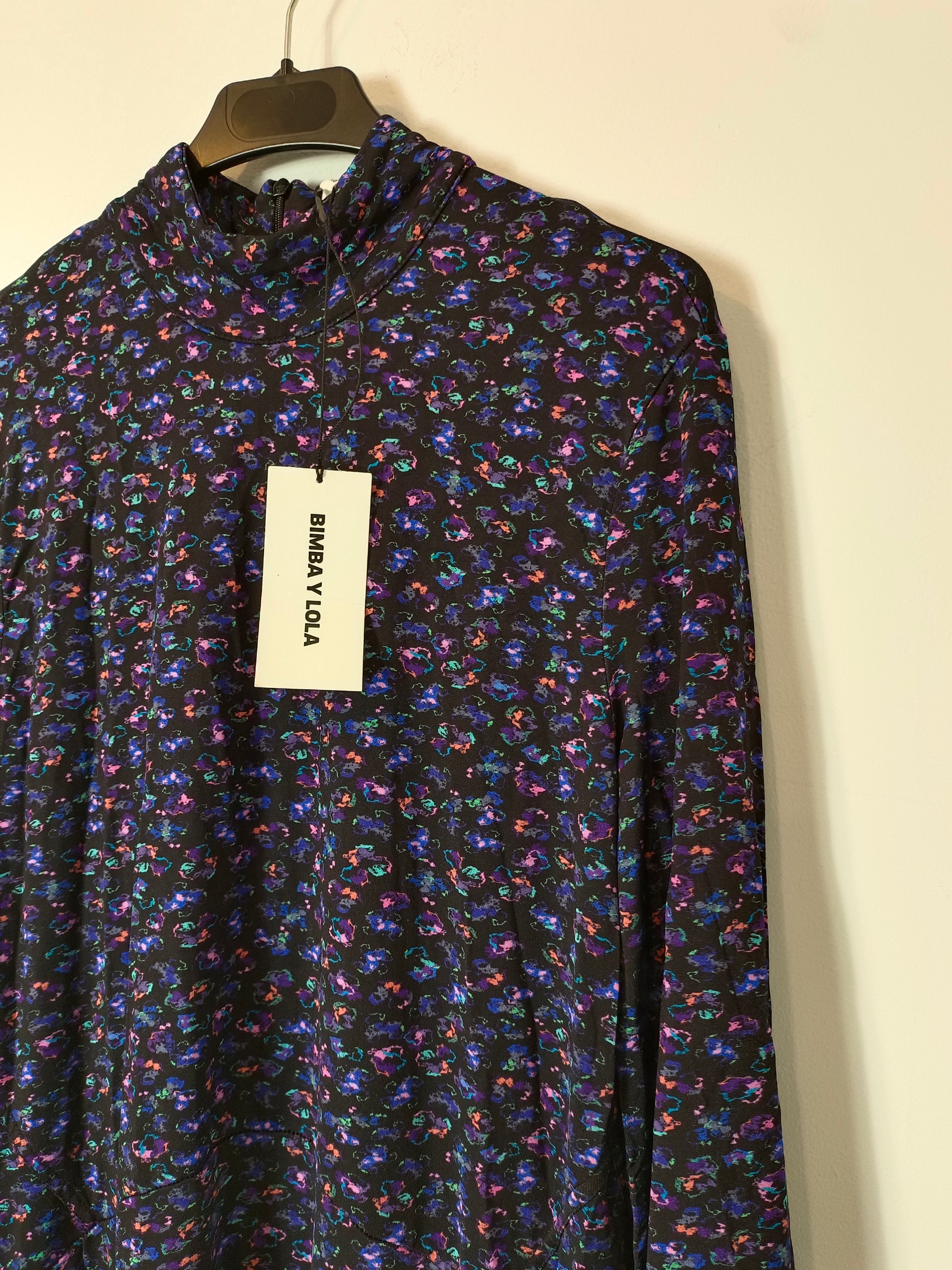 BIMBA Y LOLA. Vestido largo estampado flores moradas T.xs
