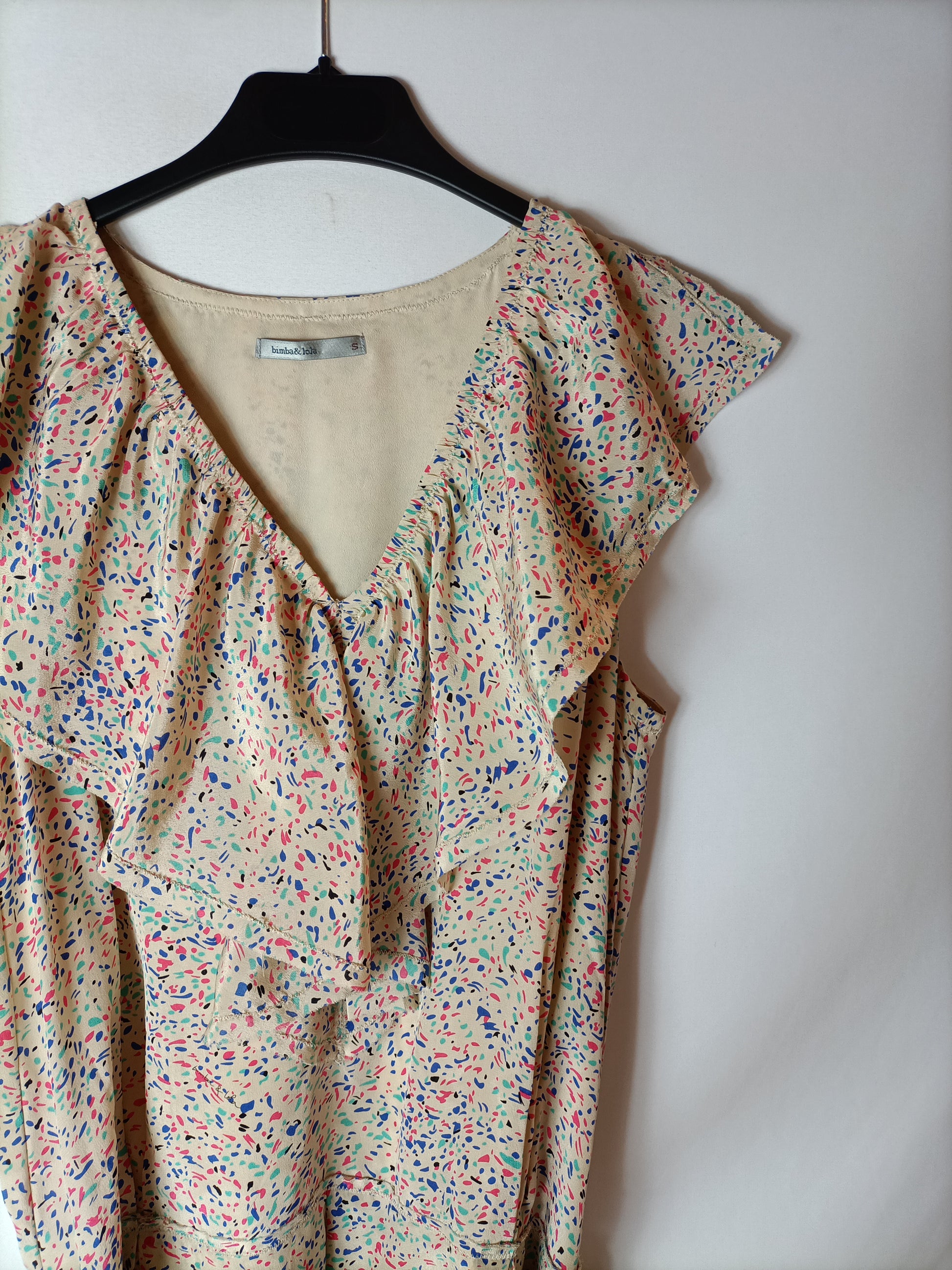 BIMBA Y LOLA. Vestido seda beige estampado. T S