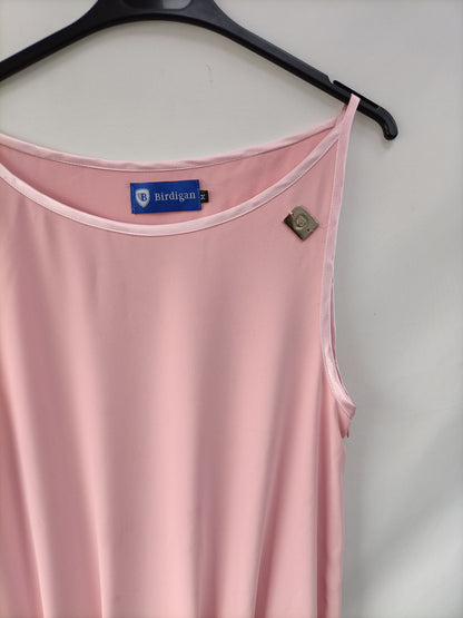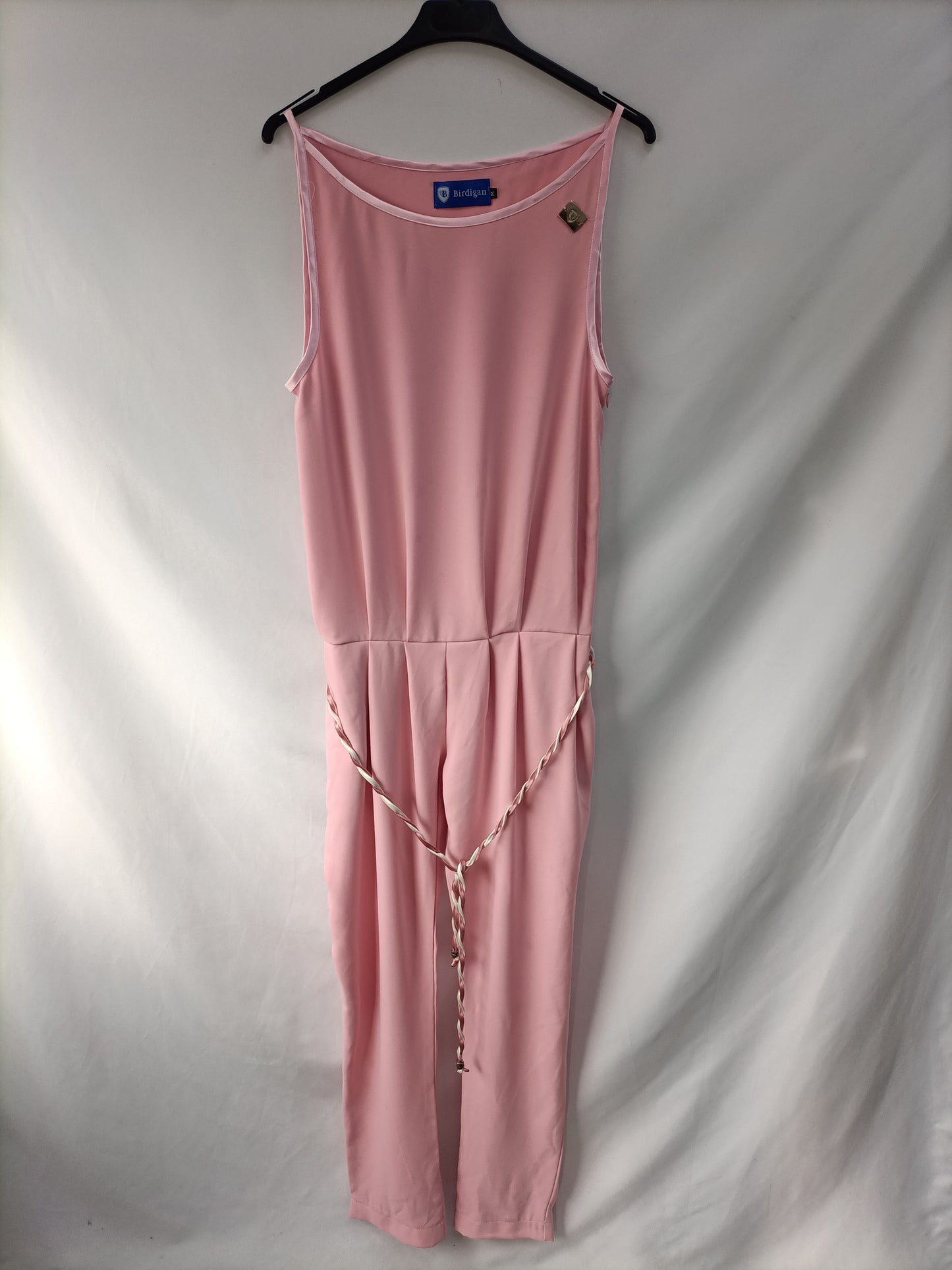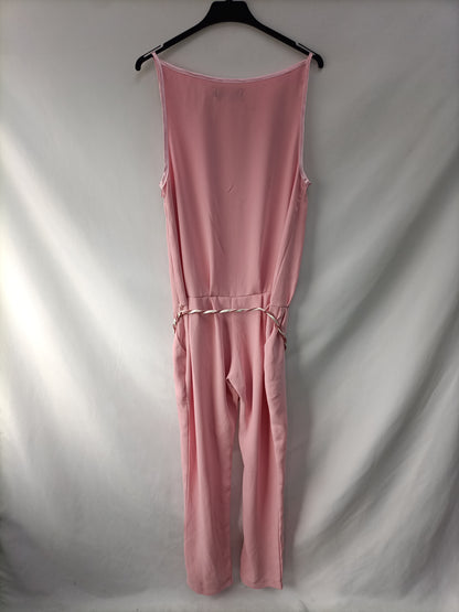 Mono rosa fluido con cinturón de cuerda. De sisa a sisa 46 cm largo 150 cm