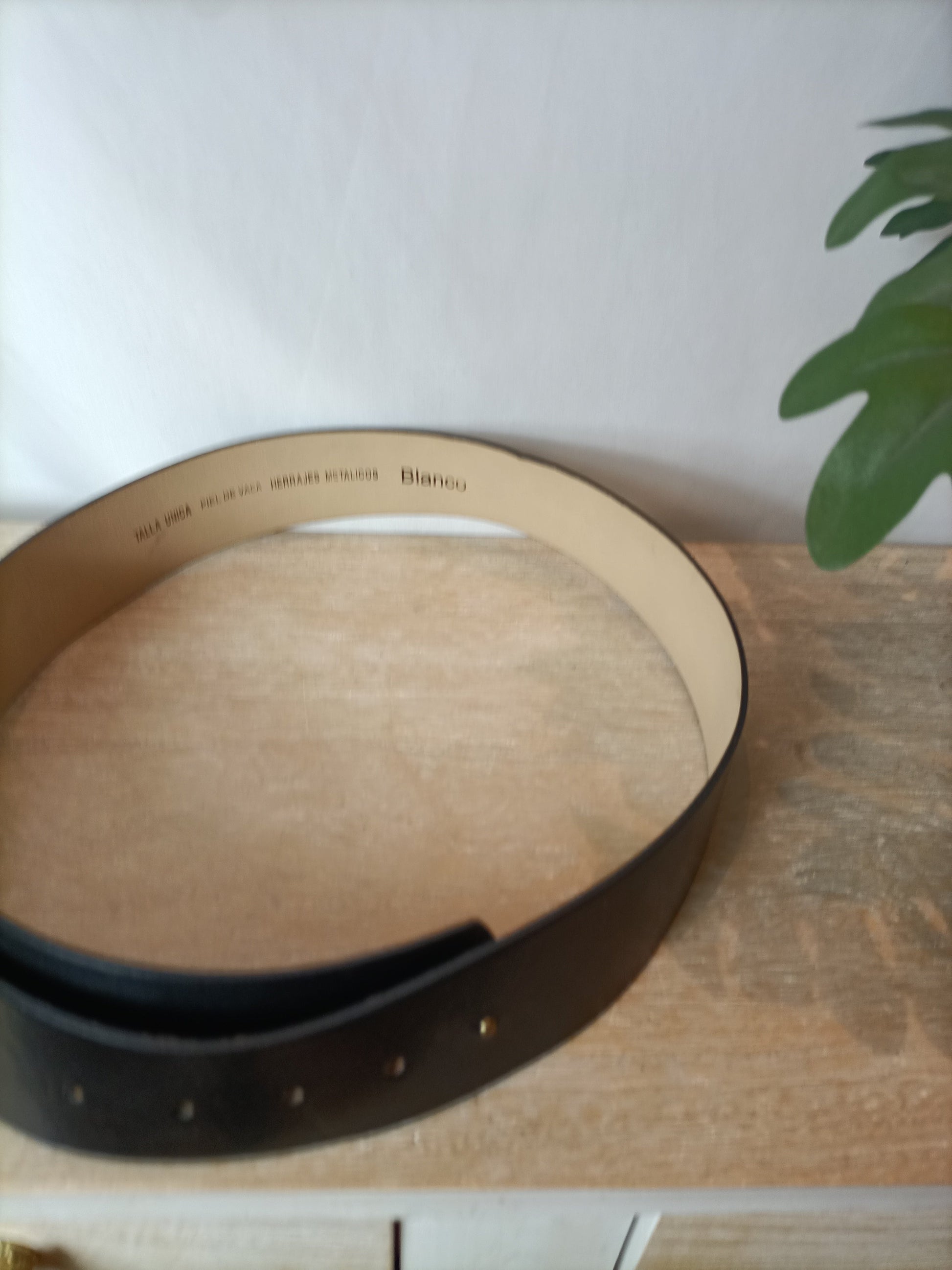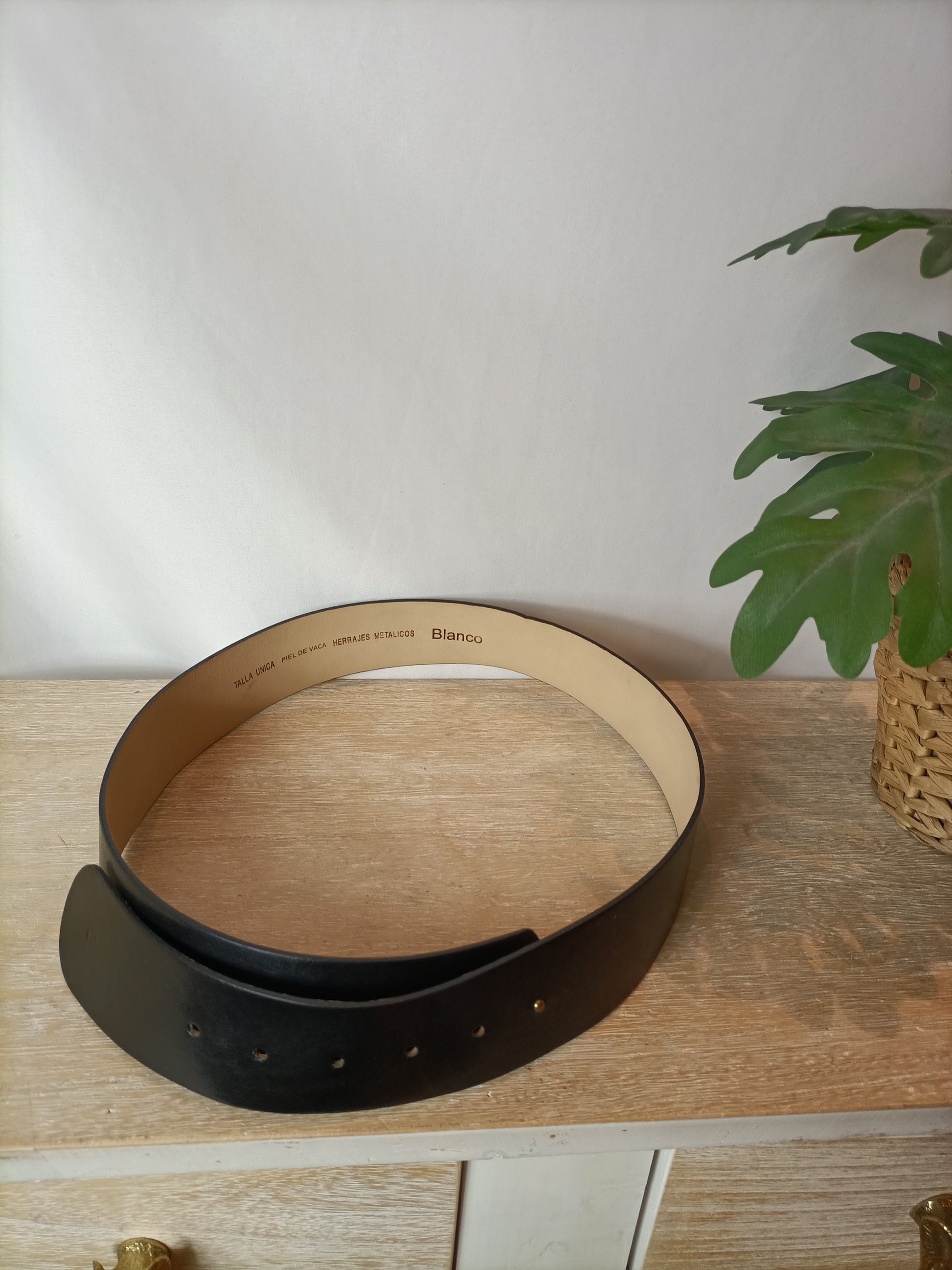 BLANCO. Cinturón ancho piel negro ajustable. TU
